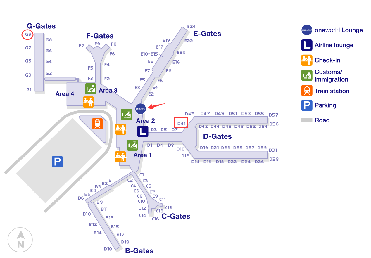 就算是新開的貴賓室,離樓主當時的登機口也挺遠的,參見上面航站樓地圖中的紅色箭頭標註的位置。