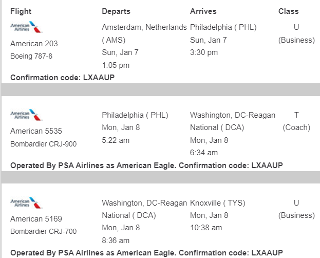 夕發夕至美東的歐洲回美航班,提供了足夠的入境和轉機時間供接駁到村裡,已經很滿意,;如果美國國內段的AA也能放Domestic First就好了,如果能在AMS的OW貴賓室開之後體驗就更完美了。