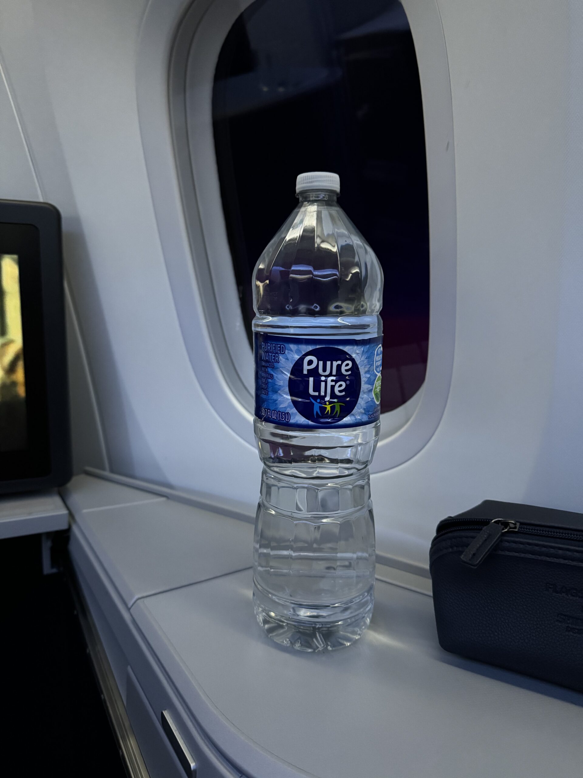 瓶裝水;梳妝包居然提供了筆,挺適合一些在機上填報關表的情形。