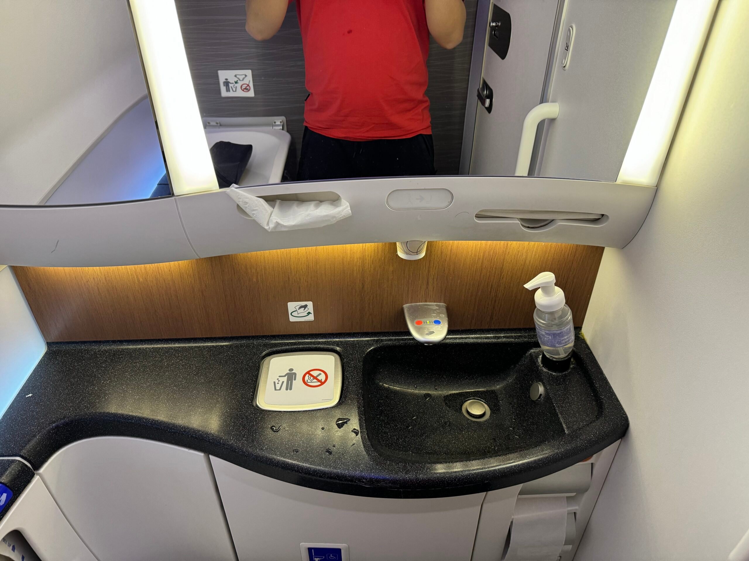 衛生間主要使用了飛機中段的,空間相對還挺大的