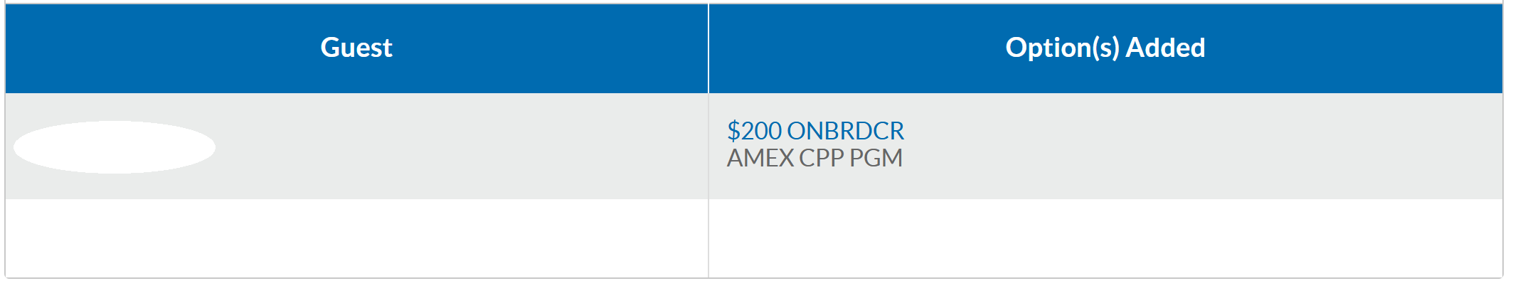 - 批准後讀者通過我們完成預定付款,這時候CPP福利就出現在預定里了。比如最近一位讀者通過我們預定的皇家加勒比行程疊加CPP,就順利拿到了每間房200USD的OBC:
