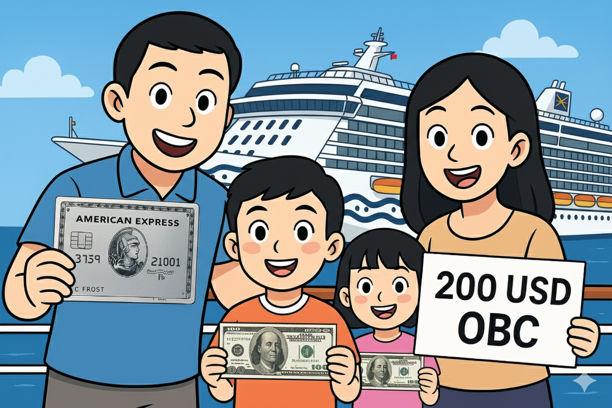 如果擔心白金卡刷郵輪只有1-2倍MR,那麼也可以考慮使用AmEx Green來預定,拿到3倍MR。根據美卡論壇的帖子實測,實際上有一筆付款使用CSR等付款也拿到了OBC,但是為了保險起見,我們建議還是使用至少一張AmEx卡付款。