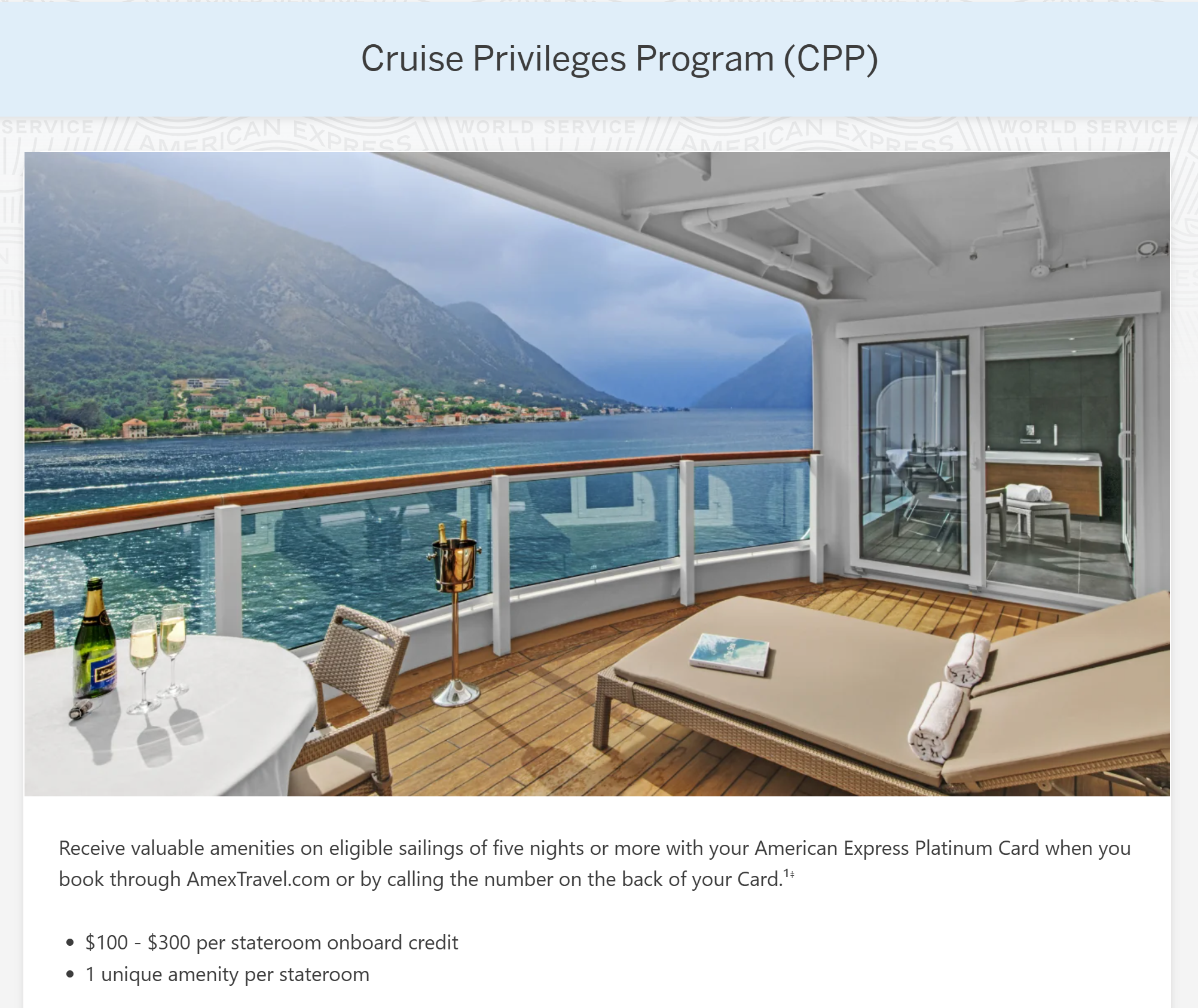 相信本站的讀者只要沒有被AmEx殺全家,大家基本上人手一張或者幾張AmEx白金卡,AmEx白金卡除了大家耳熟能詳的福利如擼UA Travel Bank,擼saks 禮卡,擼lululemon禮卡,擼resy飯店禮卡,擼FHR Credit等,還有一些不為人知的福利,這裡給大家介紹一下白金卡特有的定郵輪的Cruise Privileges Program (CPP)福利。