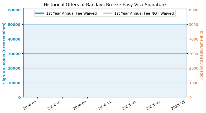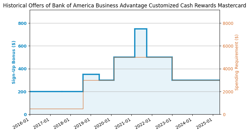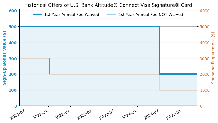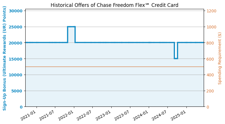 The first year value is about $2,805. Sign-up bonus: 200,000 Ultimate Rewards (UR) Points. Spending requirement: $30,000 in 6 months. The points are worth about 1.5 cents/point. You can get $600 travel credit (easy $300) plus ($300 estimated value) of various credit once in the first year. $795 annual fee, NOT waived for the first year. The first year value is about $1,850. Sign-up bonus: 2,000. Spending requirement: $30,000 in 3 months. The points are worth about 1 cents/point. $150 annual fee, NOT waived for the first year. The first year value is about $1,705. Sign-up bonus: 200,000 Membership Rewards (MR) Points. Spending requirement: $15,000 in 3 months. The points are worth about 1 cents/point. $295 annual fee, NOT waived for the first year. The first year value is about $1,680. Sign-up bonus: 125,000 Ultimate Rewards (UR) Points. Spending requirement: $6,000 in 3 months. The points are worth about 1.5 cents/point. You can get $600 travel credit (easy $300) plus ($300 estimated value) of various credit once in the first year. $795 annual fee, NOT waived for the first year. The first year value is about $1,605. Sign-up bonus: 200,000 Capital One (C1) Points. Spending requirement: $30,000 in 3 months. The points are worth about 1 cents/point. $395 annual fee, NOT waived for the first year. The first year value is about $1,155. Sign-up bonus: 100,000 Ultimate Rewards (UR) Points. Spending requirement: $8,000 in 3 months. The points are worth about 1.25 cents/point. $95 annual fee, NOT waived for the first year. The first year value is about $1,000. Sign-up bonus: 1,000. Spending requirement: $10,000 in 3 months. The points are worth about 1 cents/point. $95 annual fee, waived for the first year. The first year value is about $842. Sign-up bonus: 75,000 Ultimate Rewards (UR) Points. Spending requirement: $5,000 in 3 months. The points are worth about 1.25 cents/point. $95 annual fee, NOT waived for the first year. The first year value is about $805. Sign-up bonus: 1,000. Spending requirement: $8,000 in 3 months. The points are worth about 1 cents/point. $195 annual fee, NOT waived for the first year. The first year value is about $750. Sign-up bonus: 750. Spending requirement: $6,000 in 3 months. The points are worth about 1 cents/point. $0 annual fee. The first year value is about $750. Sign-up bonus: 75,000 Ultimate Rewards (UR) Points. Spending requirement: $6,000 in 3 months. The points are worth about 1 cents/point. $0 annual fee. The first year value is about $750. Sign-up bonus: 75,000 Ultimate Rewards (UR) Points. Spending requirement: $6,000 in 3 months. The points are worth about 1 cents/point. $0 annual fee. The first year value is about $750. Sign-up bonus: 750. Spending requirement: $7,500 in 3 months. The points are worth about 1 cents/point. $95 annual fee, waived for the first year. The first year value is about $750. Sign-up bonus: 750. Spending requirement: $6,000 in 3 months. The points are worth about 1 cents/point. $0 annual fee. The first year value is about $655. Sign-up bonus: 75,000 Capital One (C1) Points. Spending requirement: $4,000 in 3 months. The points are worth about 1 cents/point. $95 annual fee, NOT waived for the first year. The first year value is about $655. Sign-up bonus: 100,000 ThankYou Points (TYP). Spending requirement: $6,000 in 3 months. The points are worth about 1.25 cents/point. $595 annual fee, NOT waived for the first year. The first year value is about $600. Sign-up bonus: 60,000 US Bank Altitude Go/Connect Points. Spending requirement: $6,000 in 3 months. The points are worth about 1 cents/point. $95 annual fee, waived for the first year. The first year value is about $555. Sign-up bonus: 75,000 US Bank Altitude Go/Connect Points. Spending requirement: $10,000 in 3 months. The points are worth about 1 cents/point. $195 annual fee, NOT waived for the first year. The first year value is about $505. Sign-up bonus: $630. Spending requirement: $6,000 in 6 months. The points are worth about 0 cents/point. $125 annual fee, NOT waived for the first year. The first year value is about $505. Sign-up bonus: 60,000 BoA Points. Spending requirement: $4,000 in 3 months. The points are worth about 1 cents/point. $95 annual fee, NOT waived for the first year. The first year value is about $505. Sign-up bonus: 60,000 ThankYou Points (TYP). Spending requirement: $4,000 in 3 months. The points are worth about 1 cents/point. $95 annual fee, NOT waived for the first year. The first year value is about $500. Sign-up bonus: 500. Spending requirement: $5,000 in 3 months. The points are worth about 1 cents/point. $0 annual fee. The first year value is about $500. Sign-up bonus: 50,000 Capital One (C1) Points. Spending requirement: $4,500 in 3 months. The points are worth about 1 cents/point. $95 annual fee, waived for the first year. The first year value is about $500. Sign-up bonus: 40,000 Capital One (C1) Points + which is worth about $100. Spending requirement: $1,000 in 3 months. The points are worth about 1 cents/point. $0 annual fee. The first year value is about $500. Sign-up bonus: 500. Spending requirement: $5,000 in 3 months. The points are worth about 1 cents/point. $0 annual fee. The first year value is about $411. Sign-up bonus: 50,000 . Spending requirement: $2,000 in 3 months. The points are worth about 1 cents/point. $89 annual fee, NOT waived for the first year. The first year value is about $355. Sign-up bonus: 75,000 Capital One (C1) Points. Spending requirement: $4,000 in 3 months. The points are worth about 1 cents/point. $395 annual fee, NOT waived for the first year. The first year value is about $300. Sign-up bonus: 45,000 Membership Rewards (MR) Points. Spending requirement: $2,000 in 3 months. The points are worth about 1 cents/point. $150 annual fee, NOT waived for the first year. The first year value is about $300. Sign-up bonus: 300. Spending requirement: $3,000 in 3 months. The points are worth about 1 cents/point. $0 annual fee.