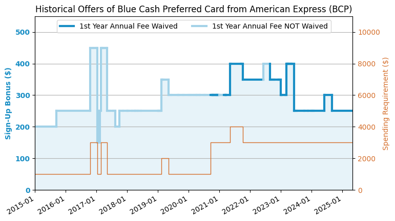 The first year value is about $2,805. Sign-up bonus: 200,000 Ultimate Rewards (UR) Points. Spending requirement: $30,000 in 6 months. The points are worth about 1.5 cents/point. You can get $600 travel credit (easy $300) plus ($300 estimated value) of various credit once in the first year. $795 annual fee, NOT waived for the first year. The first year value is about $1,850. Sign-up bonus: 2,000. Spending requirement: $30,000 in 3 months. The points are worth about 1 cents/point. $150 annual fee, NOT waived for the first year. The first year value is about $1,705. Sign-up bonus: 200,000 Membership Rewards (MR) Points. Spending requirement: $15,000 in 3 months. The points are worth about 1 cents/point. $295 annual fee, NOT waived for the first year. The first year value is about $1,680. Sign-up bonus: 125,000 Ultimate Rewards (UR) Points. Spending requirement: $6,000 in 3 months. The points are worth about 1.5 cents/point. You can get $600 travel credit (easy $300) plus ($300 estimated value) of various credit once in the first year. $795 annual fee, NOT waived for the first year. The first year value is about $1,605. Sign-up bonus: 200,000 Capital One (C1) Points. Spending requirement: $30,000 in 3 months. The points are worth about 1 cents/point. $395 annual fee, NOT waived for the first year. The first year value is about $1,155. Sign-up bonus: 100,000 Ultimate Rewards (UR) Points. Spending requirement: $8,000 in 3 months. The points are worth about 1.25 cents/point. $95 annual fee, NOT waived for the first year. The first year value is about $1,000. Sign-up bonus: 1,000. Spending requirement: $10,000 in 3 months. The points are worth about 1 cents/point. $95 annual fee, waived for the first year. The first year value is about $842. Sign-up bonus: 75,000 Ultimate Rewards (UR) Points. Spending requirement: $5,000 in 3 months. The points are worth about 1.25 cents/point. $95 annual fee, NOT waived for the first year. The first year value is about $805. Sign-up bonus: 1,000. Spending requirement: $8,000 in 3 months. The points are worth about 1 cents/point. $195 annual fee, NOT waived for the first year. The first year value is about $750. Sign-up bonus: 750. Spending requirement: $6,000 in 3 months. The points are worth about 1 cents/point. $0 annual fee. The first year value is about $750. Sign-up bonus: 75,000 Ultimate Rewards (UR) Points. Spending requirement: $6,000 in 3 months. The points are worth about 1 cents/point. $0 annual fee. The first year value is about $750. Sign-up bonus: 75,000 Ultimate Rewards (UR) Points. Spending requirement: $6,000 in 3 months. The points are worth about 1 cents/point. $0 annual fee. The first year value is about $750. Sign-up bonus: 750. Spending requirement: $7,500 in 3 months. The points are worth about 1 cents/point. $95 annual fee, waived for the first year. The first year value is about $750. Sign-up bonus: 750. Spending requirement: $6,000 in 3 months. The points are worth about 1 cents/point. $0 annual fee. The first year value is about $655. Sign-up bonus: 75,000 Capital One (C1) Points. Spending requirement: $4,000 in 3 months. The points are worth about 1 cents/point. $95 annual fee, NOT waived for the first year. The first year value is about $655. Sign-up bonus: 100,000 ThankYou Points (TYP). Spending requirement: $6,000 in 3 months. The points are worth about 1.25 cents/point. $595 annual fee, NOT waived for the first year. The first year value is about $605. Sign-up bonus: 100,000 Capital One (C1) Points. Spending requirement: $10,000 in 6 months. The points are worth about 1 cents/point. $395 annual fee, NOT waived for the first year. The first year value is about $600. Sign-up bonus: 60,000 US Bank Altitude Go/Connect Points. Spending requirement: $6,000 in 3 months. The points are worth about 1 cents/point. $95 annual fee, waived for the first year. The first year value is about $555. Sign-up bonus: 75,000 US Bank Altitude Go/Connect Points. Spending requirement: $10,000 in 3 months. The points are worth about 1 cents/point. $195 annual fee, NOT waived for the first year. The first year value is about $505. Sign-up bonus: $630. Spending requirement: $6,000 in 6 months. The points are worth about 0 cents/point. $125 annual fee, NOT waived for the first year. The first year value is about $505. Sign-up bonus: 60,000 BoA Points. Spending requirement: $4,000 in 3 months. The points are worth about 1 cents/point. $95 annual fee, NOT waived for the first year. The first year value is about $505. Sign-up bonus: 60,000 ThankYou Points (TYP). Spending requirement: $4,000 in 3 months. The points are worth about 1 cents/point. $95 annual fee, NOT waived for the first year. The first year value is about $500. Sign-up bonus: 500. Spending requirement: $5,000 in 3 months. The points are worth about 1 cents/point. $0 annual fee. The first year value is about $500. Sign-up bonus: 50,000 Capital One (C1) Points. Spending requirement: $4,500 in 3 months. The points are worth about 1 cents/point. $95 annual fee, waived for the first year. The first year value is about $500. Sign-up bonus: 40,000 Capital One (C1) Points + which is worth about $100. Spending requirement: $1,000 in 3 months. The points are worth about 1 cents/point. $0 annual fee. The first year value is about $500. Sign-up bonus: 500. Spending requirement: $5,000 in 3 months. The points are worth about 1 cents/point. $0 annual fee. The first year value is about $411. Sign-up bonus: 50,000 . Spending requirement: $2,000 in 3 months. The points are worth about 1 cents/point. $89 annual fee, NOT waived for the first year. The first year value is about $300. Sign-up bonus: 45,000 Membership Rewards (MR) Points. Spending requirement: $2,000 in 3 months. The points are worth about 1 cents/point. $150 annual fee, NOT waived for the first year. The first year value is about $300. Sign-up bonus: 300. Spending requirement: $3,000 in 3 months. The points are worth about 1 cents/point. $0 annual fe