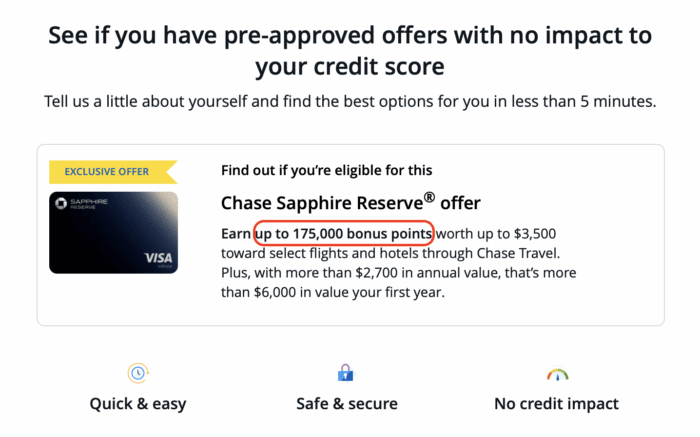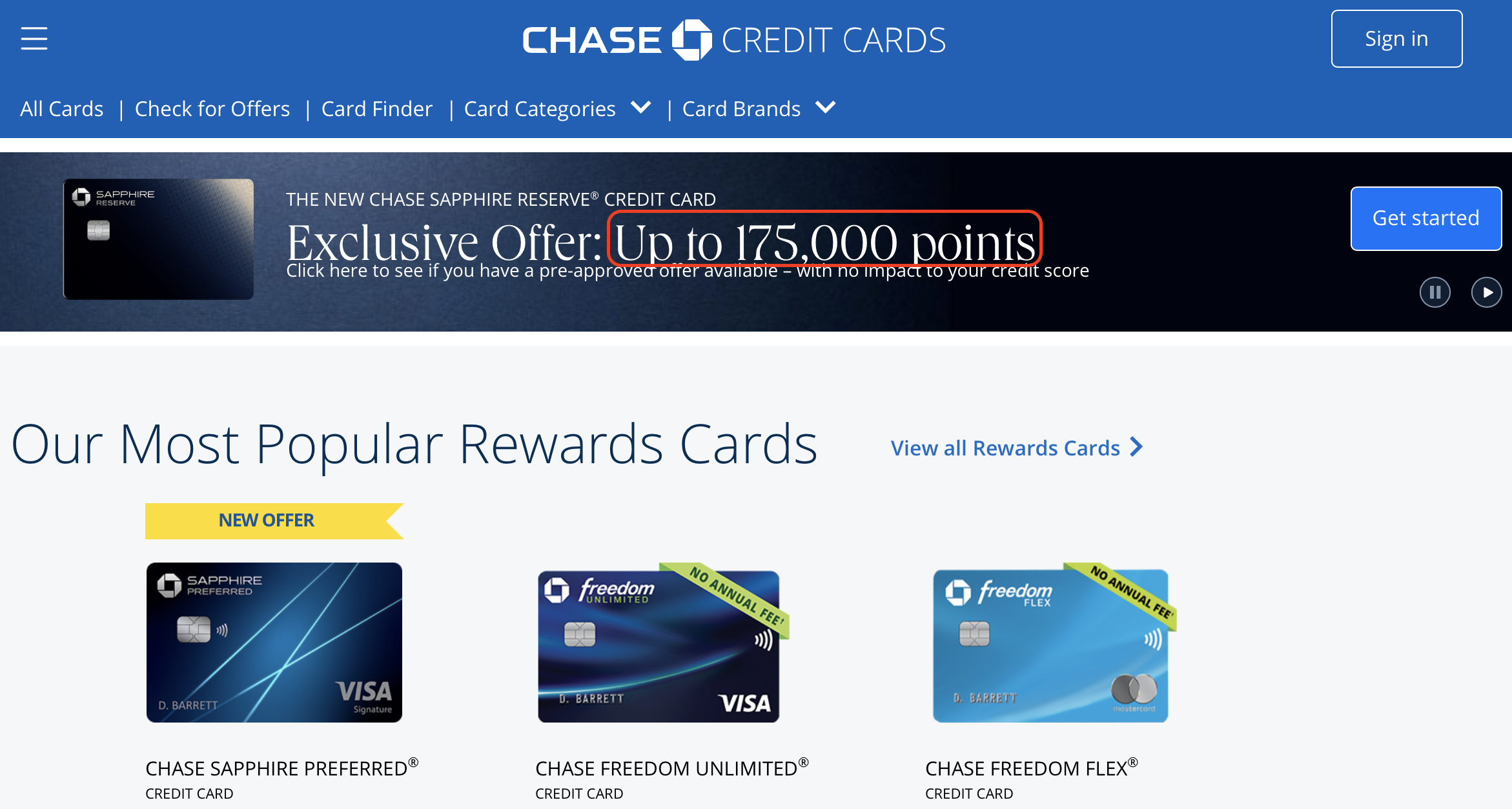 现在顶部的广告位就是下面截图那样,写着 CSR 的 pre-approved offer 是 “up to 175,000 points”。