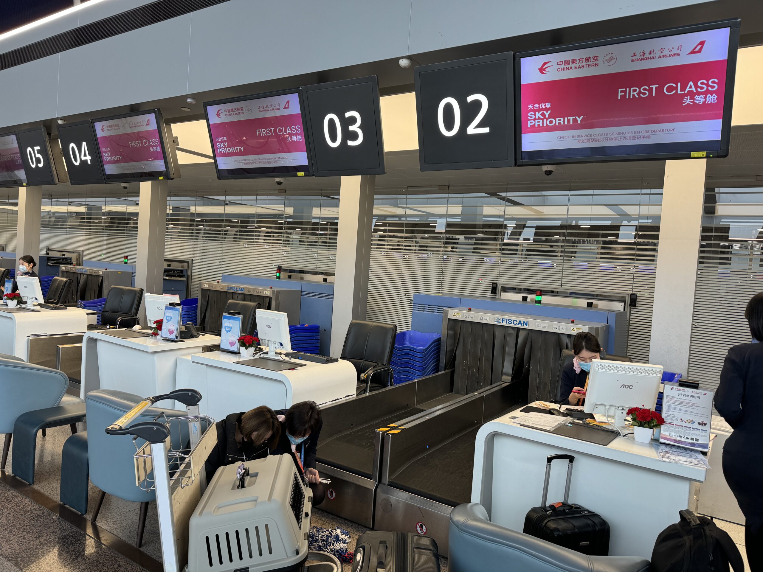 拿到登機牌就過安檢和邊檢去值機了,好像是先過的邊檢出境,自助刷護照出,然後過安檢,有頭等艙商務艙通道。狗狗由志願者拉去打包後送去專用行李處了(一般是超規行李)。
