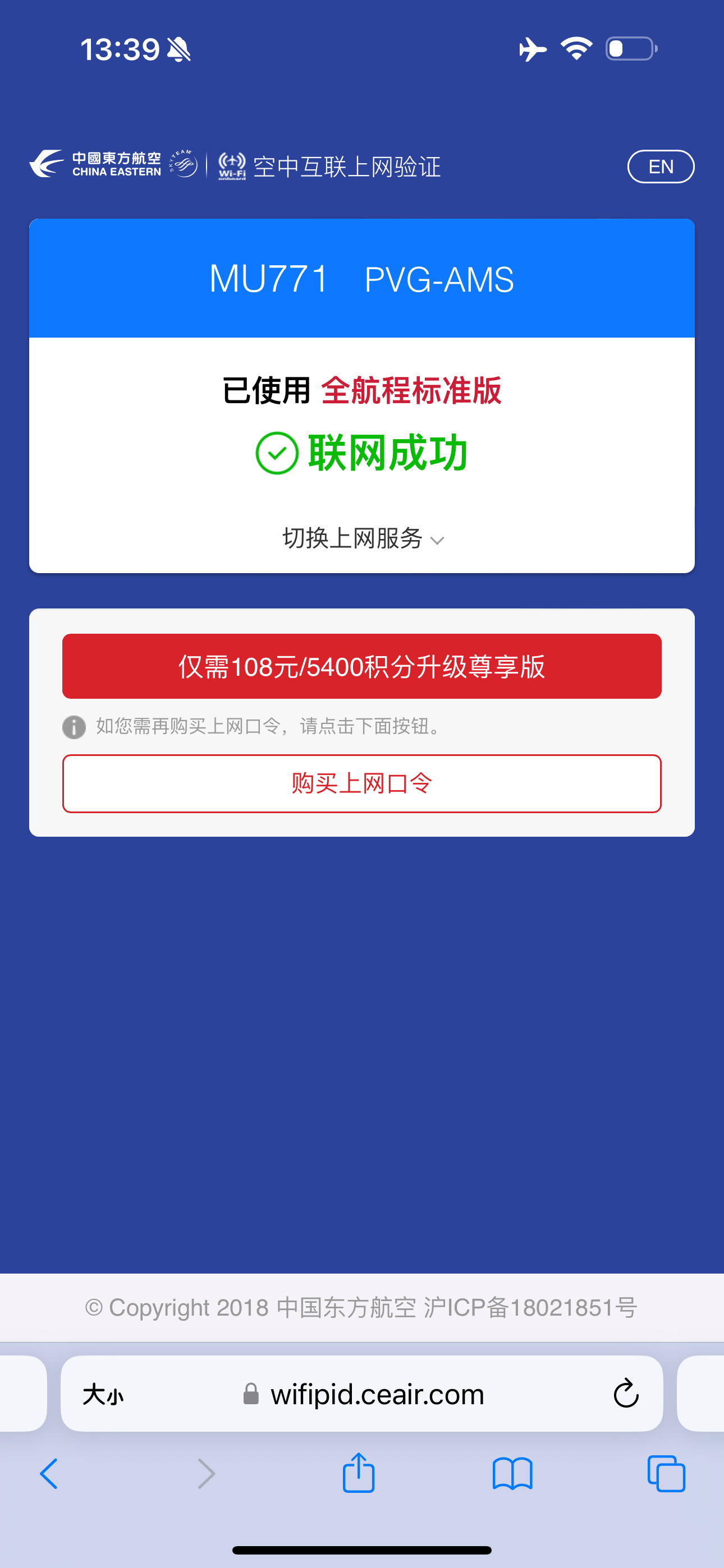 即使是外航預定,商務艙和頭等艙有免費Wi-Fi,速度還不錯,但畢竟bug的是,如果有兩台手機,如果其中一台A連了,然後在B上再連一次的話,A那台會自動掉線,且可能無法再連上。