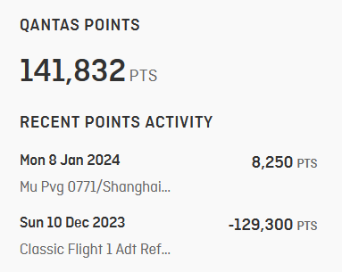 額外bonus:因為航變,此次飛行還額外給Qantas賬戶積累了8250 pts(QF里程項目用points而不是miles)