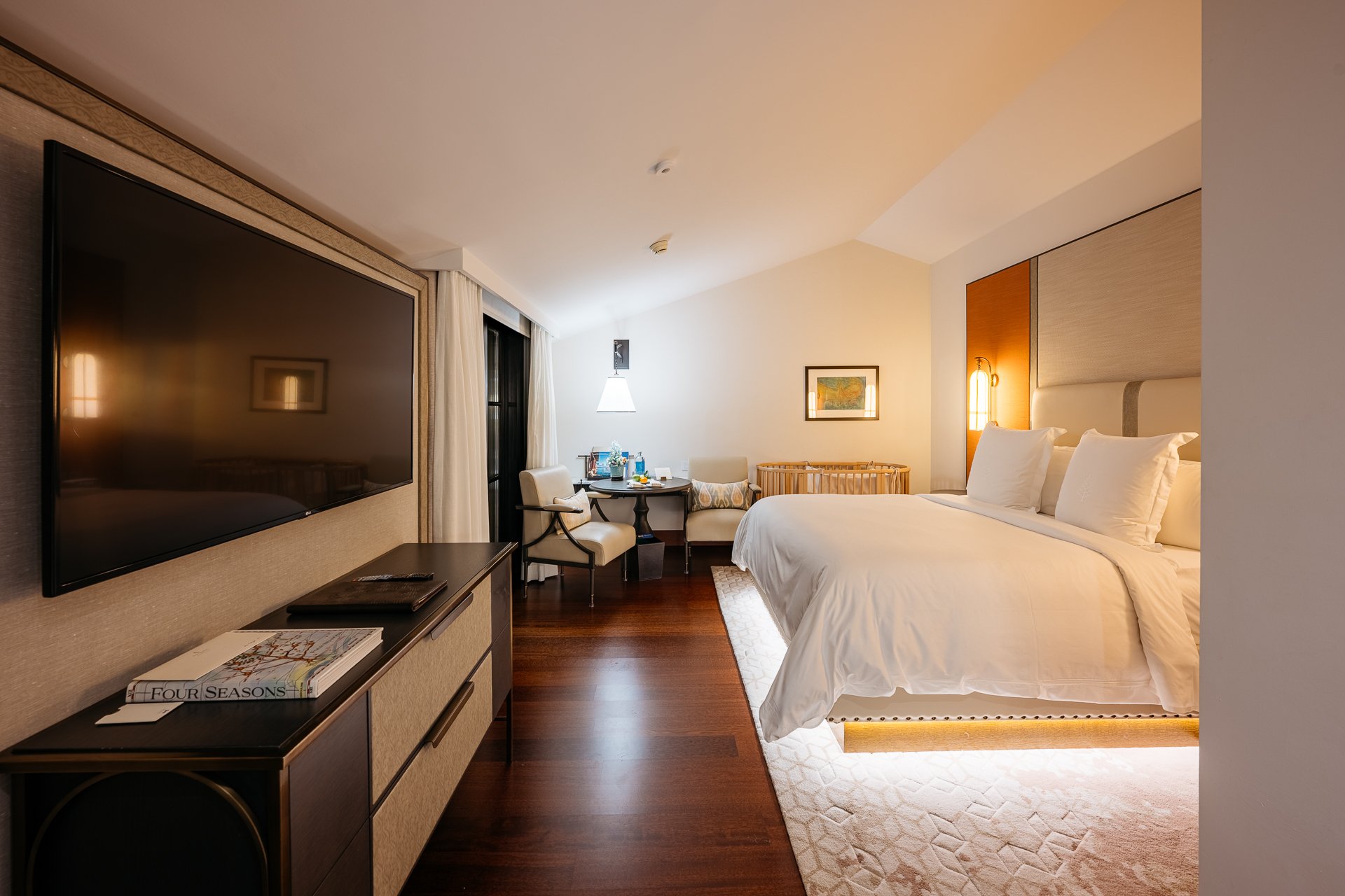 我们一共订了2间房,到店前台说都升了一级到 Deluxe Room,而且给我们安排到同一层相邻的两间了。酒店1996年初次开业,2022年完成了最近的一次翻新。四季的床是真的都非常舒服,是他家一大优势,飞了长途航班非常需要这种舒适的床好好睡一觉。