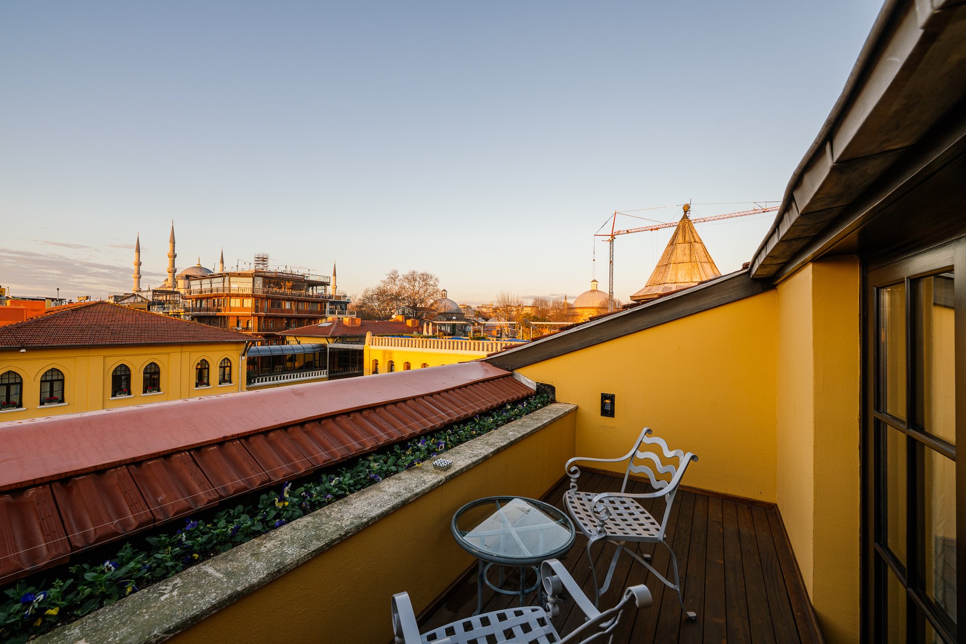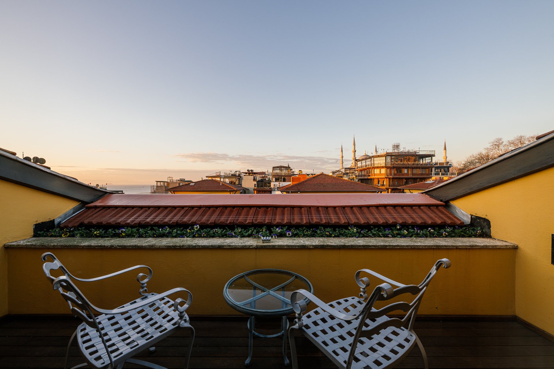 酒店说是升了一级到 Deluxe 房型,但我们这两间似乎也不是标准的 Deluxe 房间。入住感觉面积比官网介绍的要略小,但是都有个小露台!超级加分。露台可以直接看到蓝色清真寺和一些海景。倒时差早上起的早,来这里静静坐着看太阳一点点照亮欧亚大陆,别提多惬意了。