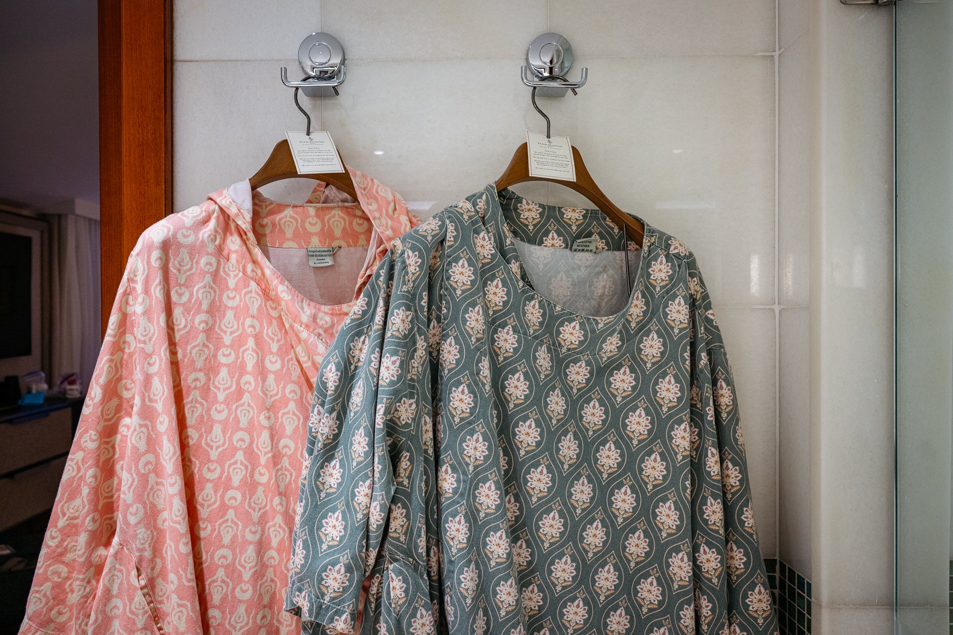 酒店给的浴袍有点特色,让我想起了曾经 Amanjena 送的袍子。