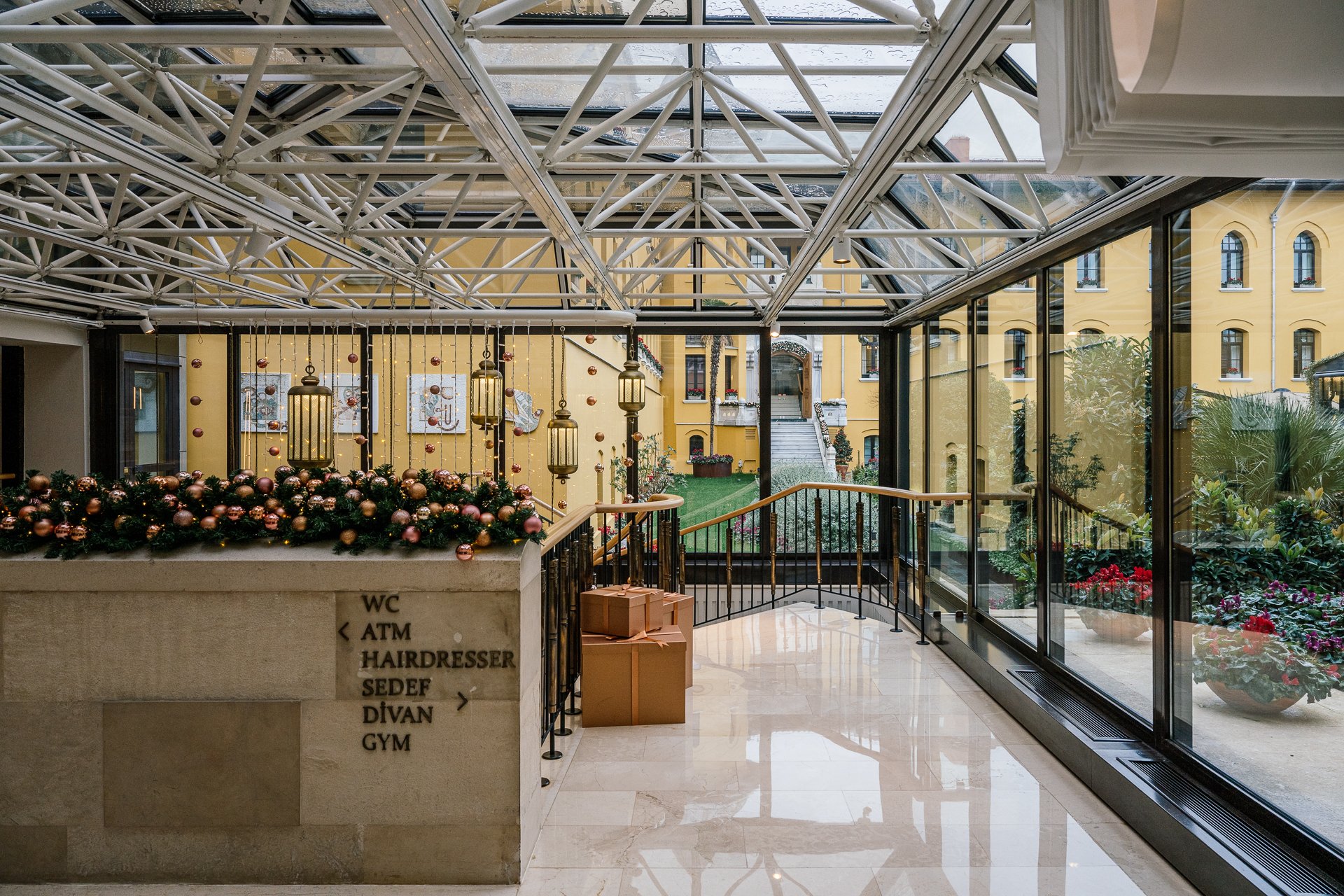 酒店所在这篇老城区非常拥挤,同时也非常商业化了(换言之坑游客的店很多)。我们是付费找的接机服务,老司机开着小客车在老城区里也游刃有余,令人佩服。酒店前身是一座1918年修建的奥斯曼帝国的监狱,1990年代四季集团接手改造成了现在的 Four Seasons Istanbul at Sultanahmet 酒店。酒店一共65间客房,按体量算是很典型的精品酒店 (Boutique Hotel),在喧嚣的古城中给住客一片安静的绿洲。