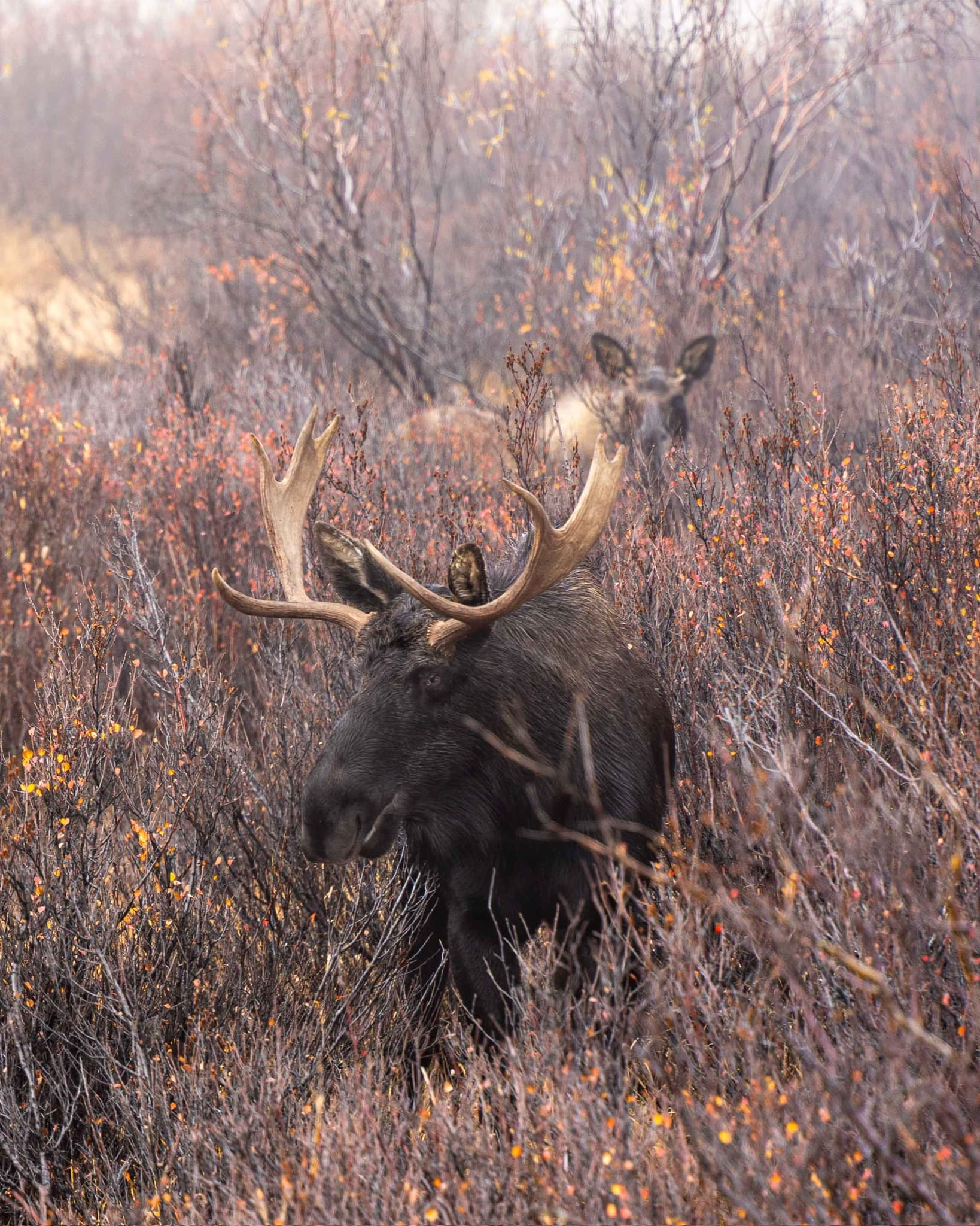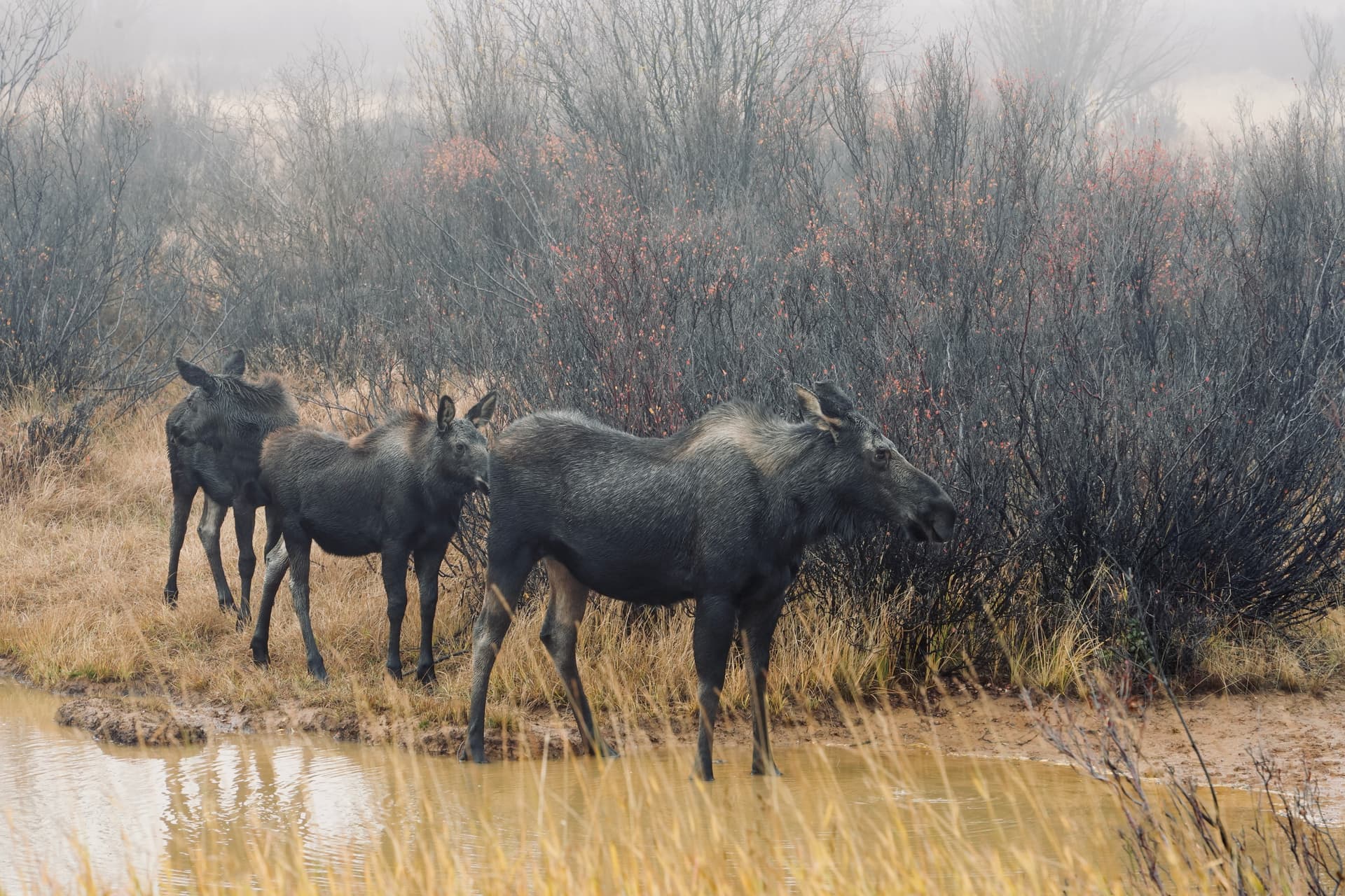 好處是遠遠看到了母子/女兩頭moose還有一群elk。