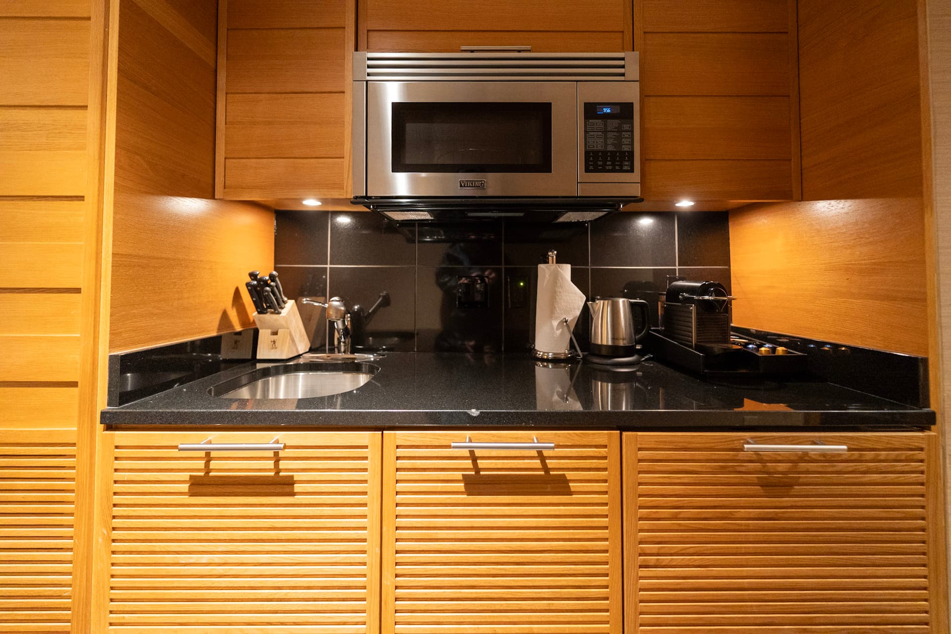 早餐是每人$45 credit不含稅和小費。前台升級了更大一些的雙床房,有個小廚房,有整套的單立人刀具,進門的門廊大得嚇人