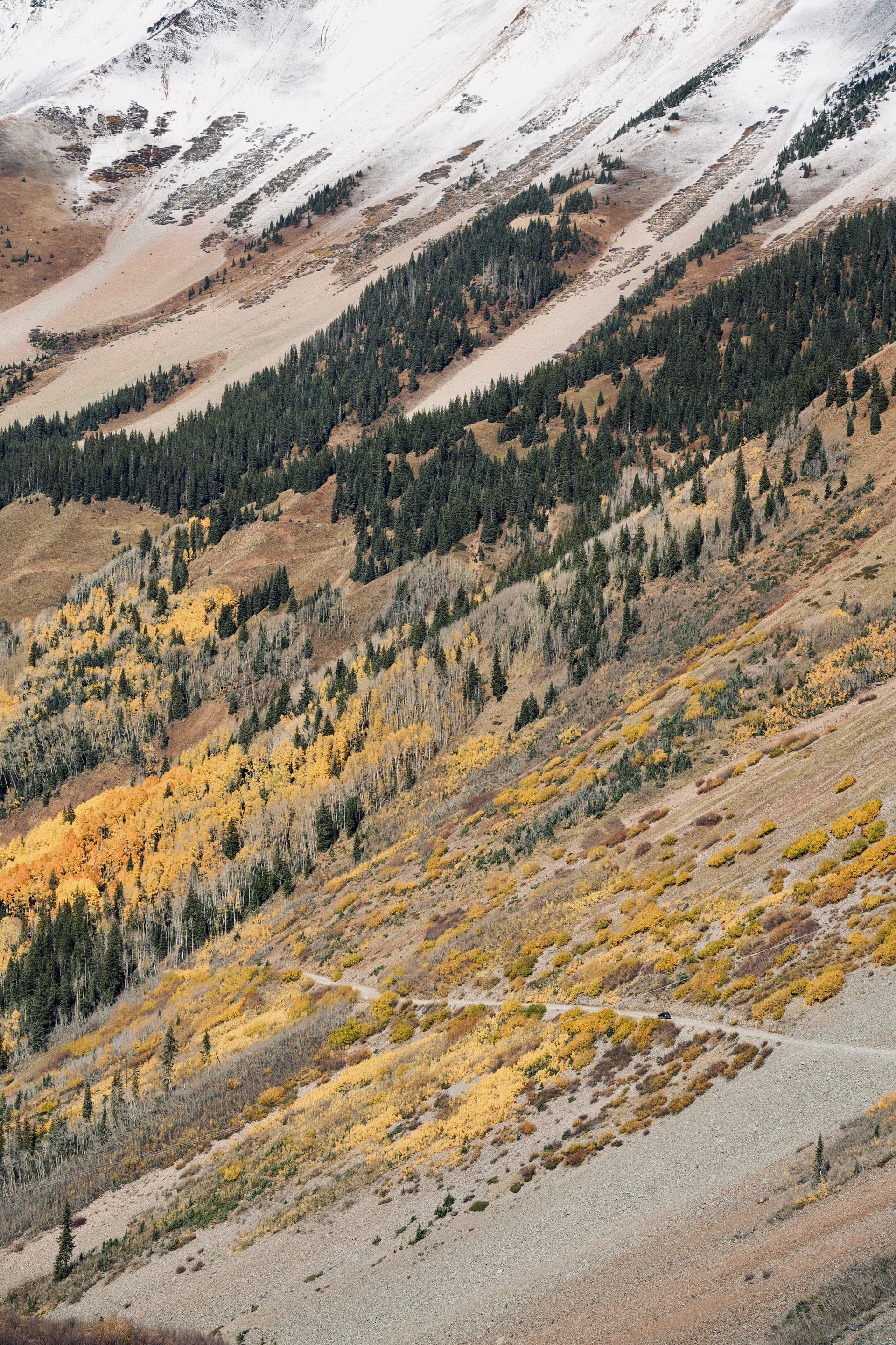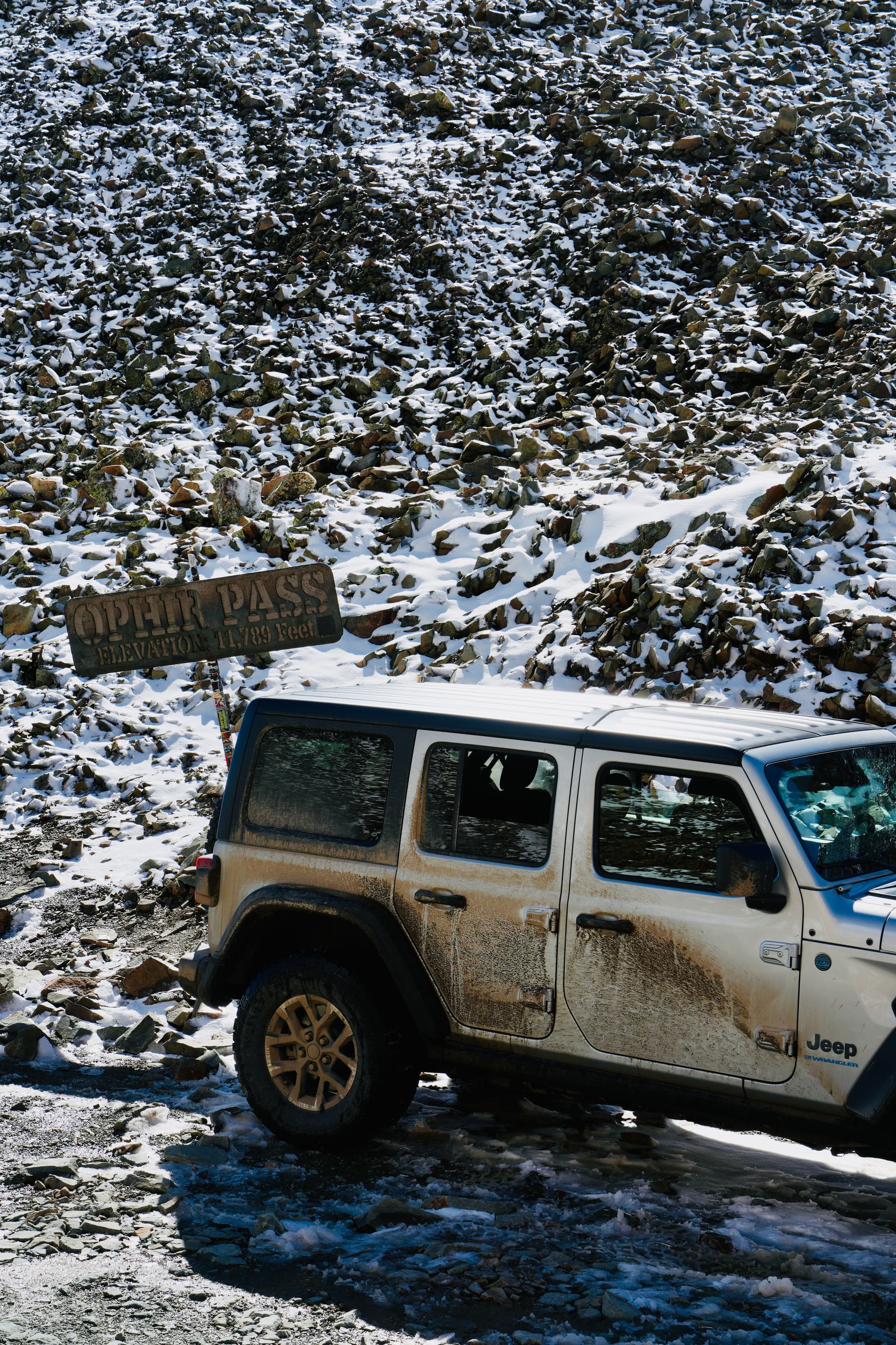 如今它早已不收費了,也沒有了事實上的通車意義,但是卻成為了一條經典的越野路線。這條路線部分路段很窄,有對向來車時需要錯車,我們開著一輛Wrangler一路上大多也遇到是Wrangler車友,大家很默契地互相招呼。科州的這一片山區也是越野愛好者的天堂了,有Black Bear Pass和Imogene Pass這種經典難度offroad,Ouray也被稱為Jeep Capital of the World。這次在Ophir Pass上還遇到了San Juan Scenic Jeep Tour的一個嚮導,這家公司自 1946 年起就在聖胡安山脈帶遊客走礦道、越嶺口,是世界上最早的Jeep Tour公司。