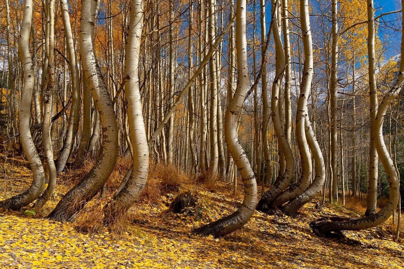 據說是因為雪崩把Aspen壓彎了之後它自己又長直了,從而形成了這個搖曳的姿態,十分魔性。而且這些樹長著長著會慢慢自我修正,所以這也算一處過幾年就會消失的景色了。