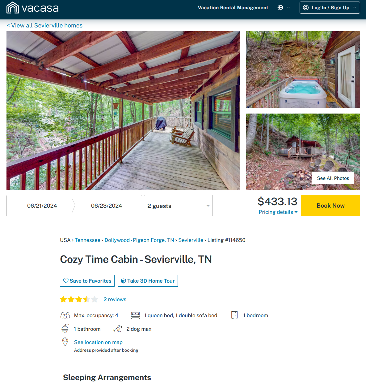 搜索先要去官网www.vacasa.com,打开后不需要log in,直接输入目的地(eg. Gatlinburg, TN)、日期和人数(以及狗数);