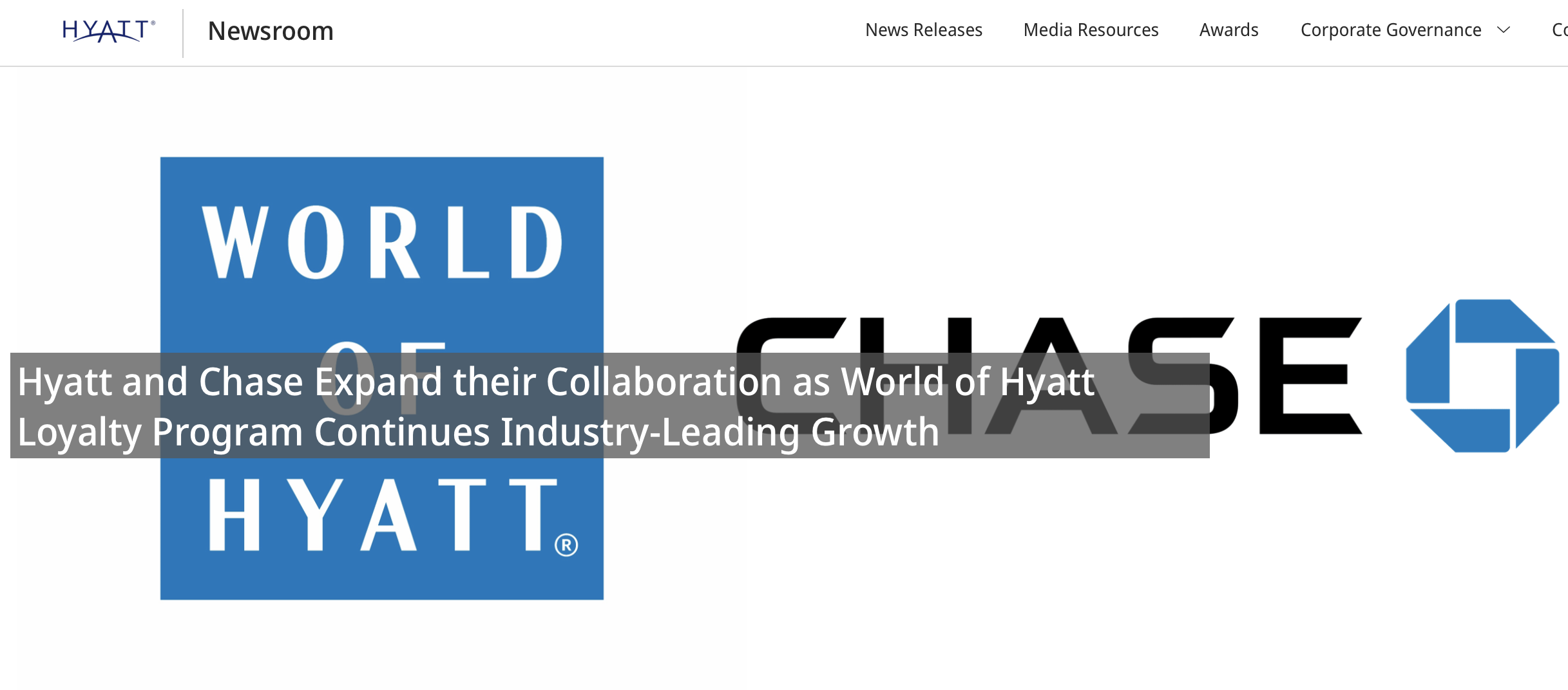 Chase 和 Hyatt 联合发了新闻稿,谈了谈15年来的合作多么好,然后发了一些展望。
