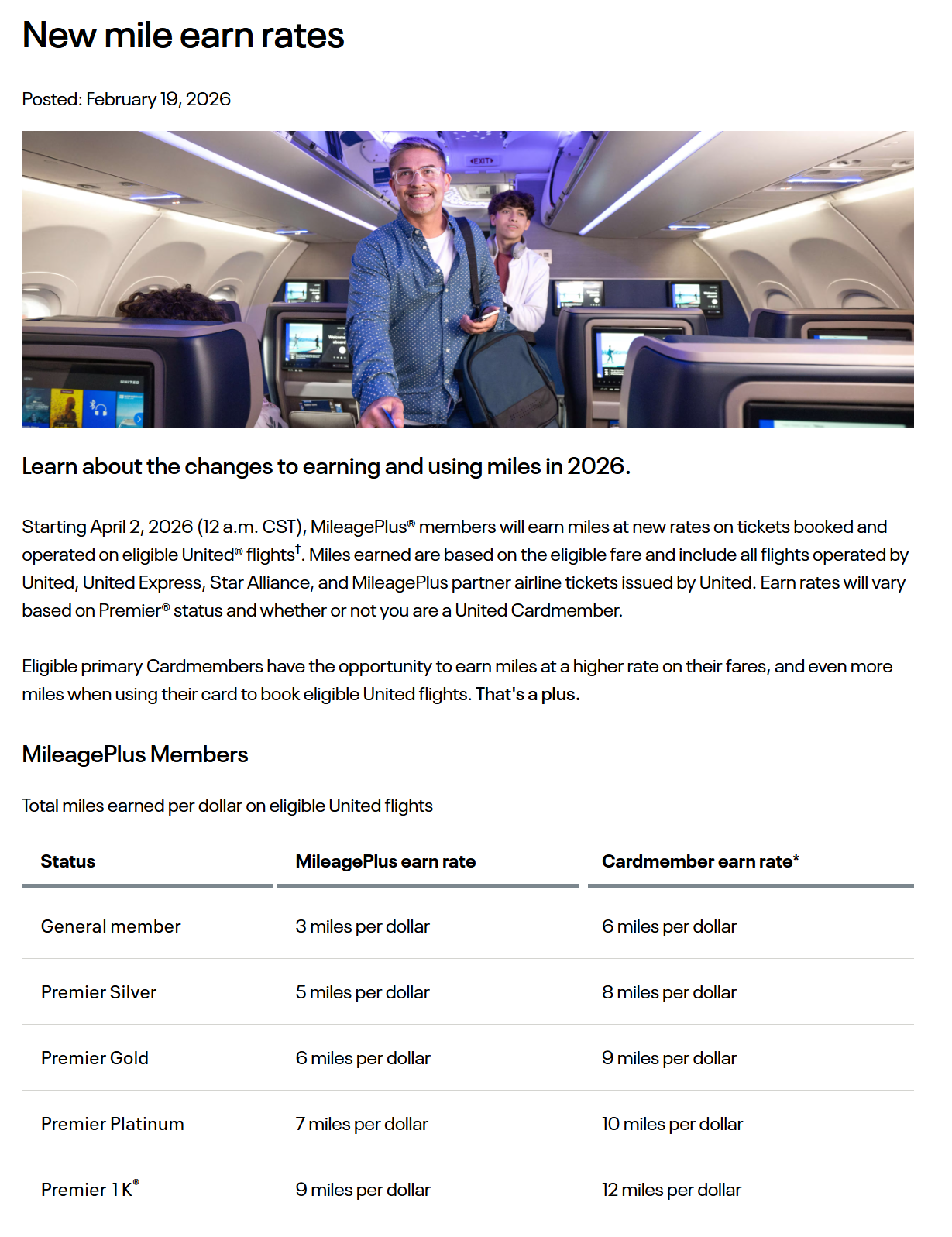 今天(2026年2月19日),美聯航UA宣布了自家裡程計劃MileagePlus幾個重大的改革。