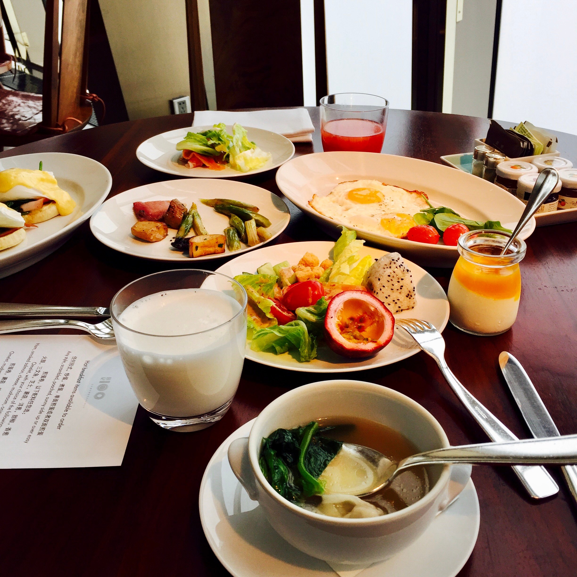 殘暴的早飯有木有!教科書式的早飯有木有!簡直是在教紐約柏悅如何做早餐!自取區域有中日西三大類食物,每類又分七八個品種。飲料提供鮮榨果汁、牛奶、咖啡、養樂多等等,然而偏偏我想喝的哈密瓜汁沒有!於是就問了一下廚師,立刻給我去榨了一杯出來,好評!此外,還有一份菜單可以點現做的菜品,試了幾樣都很好吃!