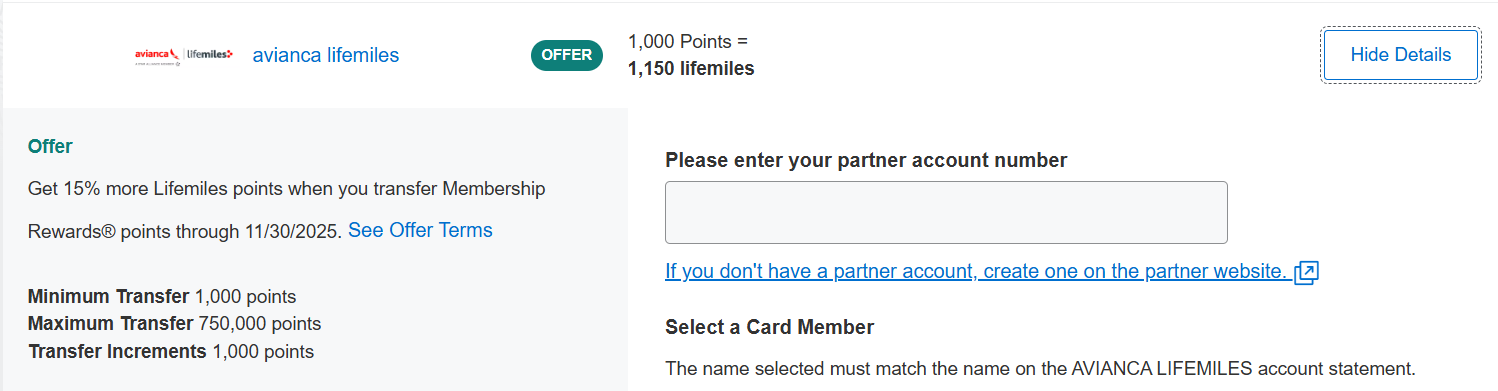 【2025.11 更新】AmEx MR -> Avianca Lifemiles (AV) 15% Bonus