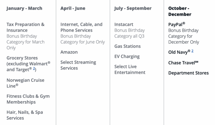 有幾張信用卡有季度輪轉5%的返現類別:Chase Freedom Flex (CFF)(以及舊版 Chase Freedom)、Discover ItCiti DividendUS Bank Cash Plus。5%類別需要每季度激活才可以使用,以下為激活鏈接:
