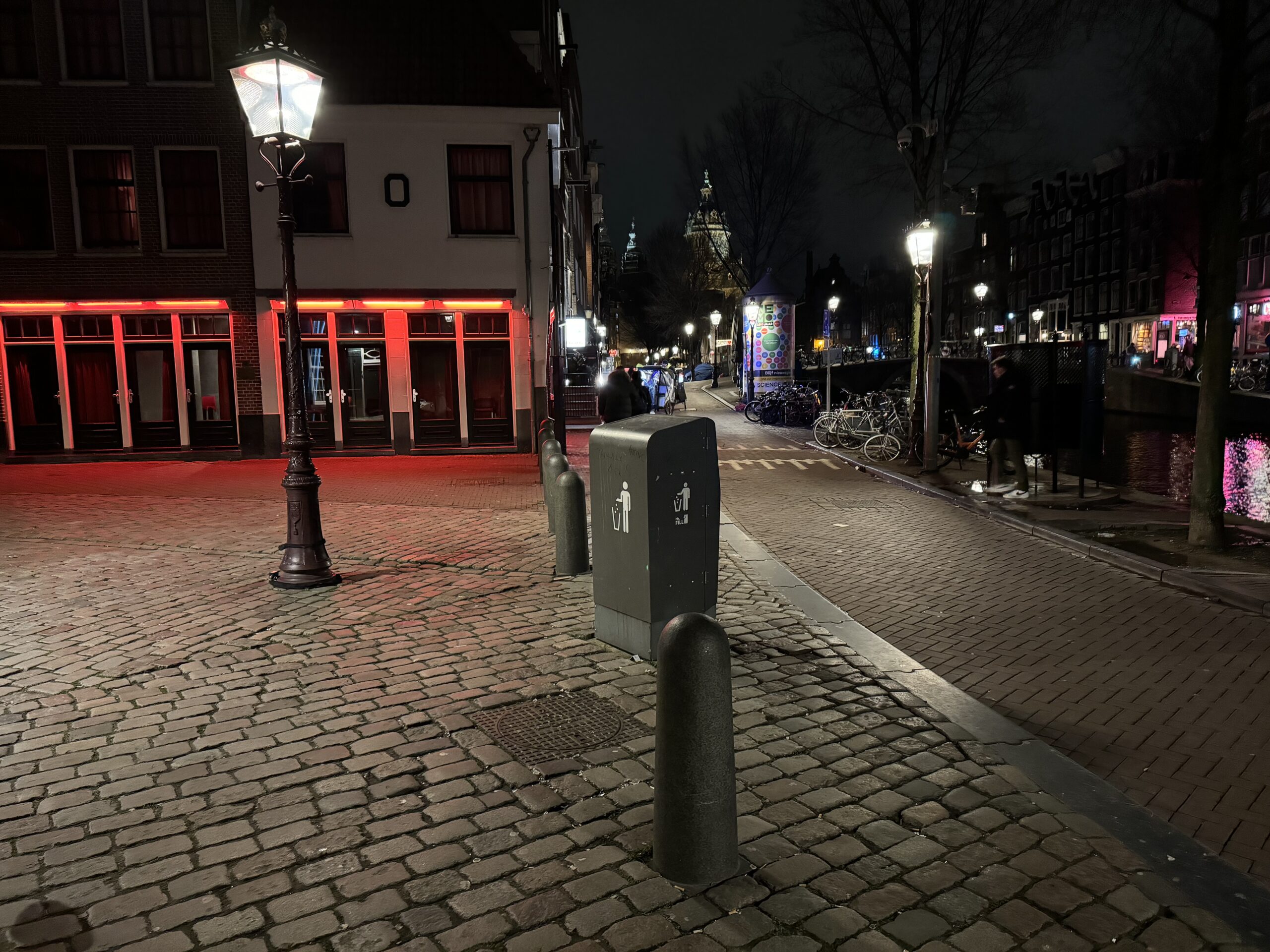 到市中心以及红灯区拍了一下,其实所谓红灯区,就是街边一些店铺亮起红灯,然后有女郎穿着凉快的坐窗边(而不是站街),大部分人都是window shopping来打卡的,如果正眼看向女郎,她们有可能还会对你抛媚眼或以姿势挑逗,然而女郎们大部分是“丰乳肥臀”,因此基于亚洲人的审美来说,大部分亚洲人看了是没xìng趣的;除了红灯店,旁边当然少不了某些器具道具店,而店的隔壁居然是家中餐馆,难道这就是传说中的食色性也么。