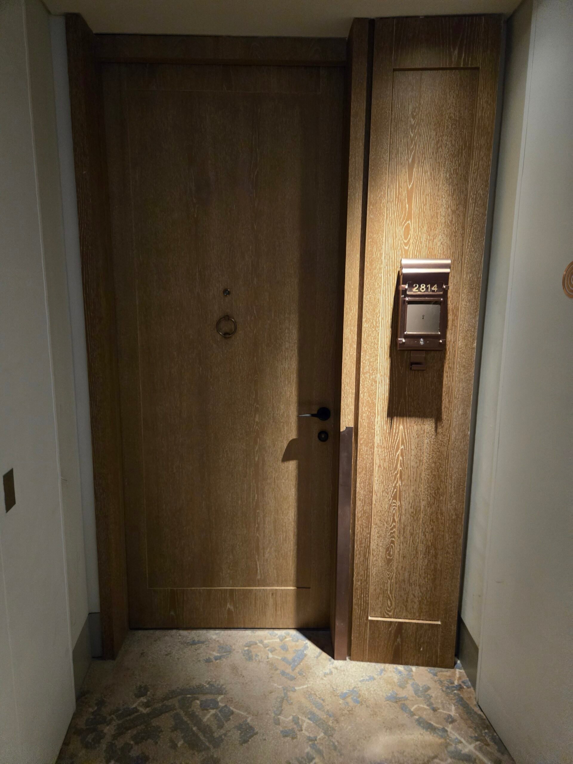 入住后给了28楼(算低楼层)的角落标准套房2814。带着娃在28楼上下打探一下挑空大堂: