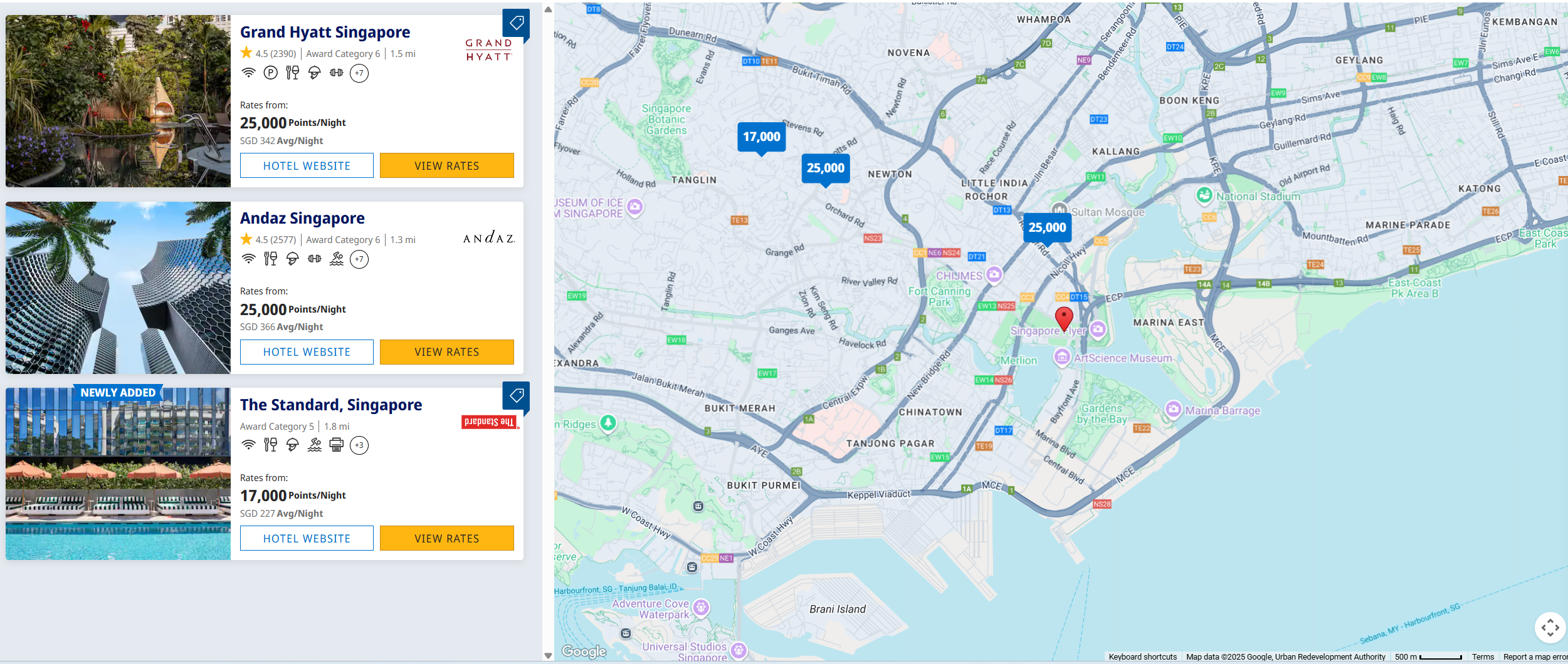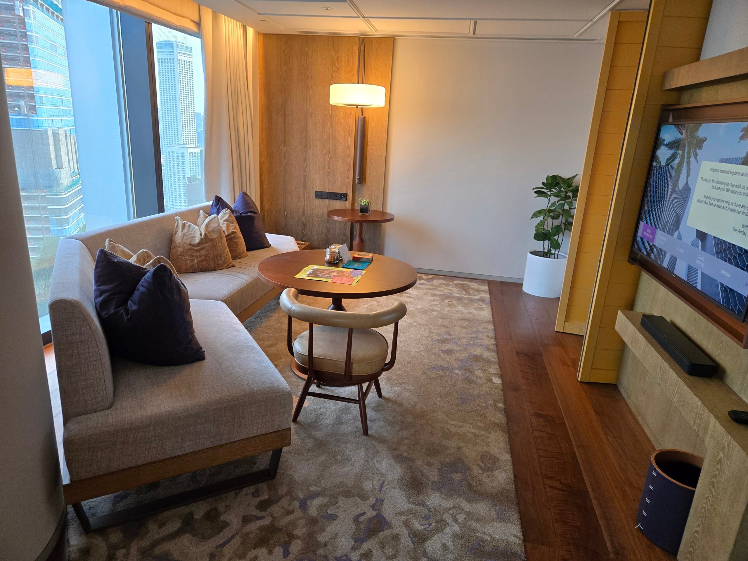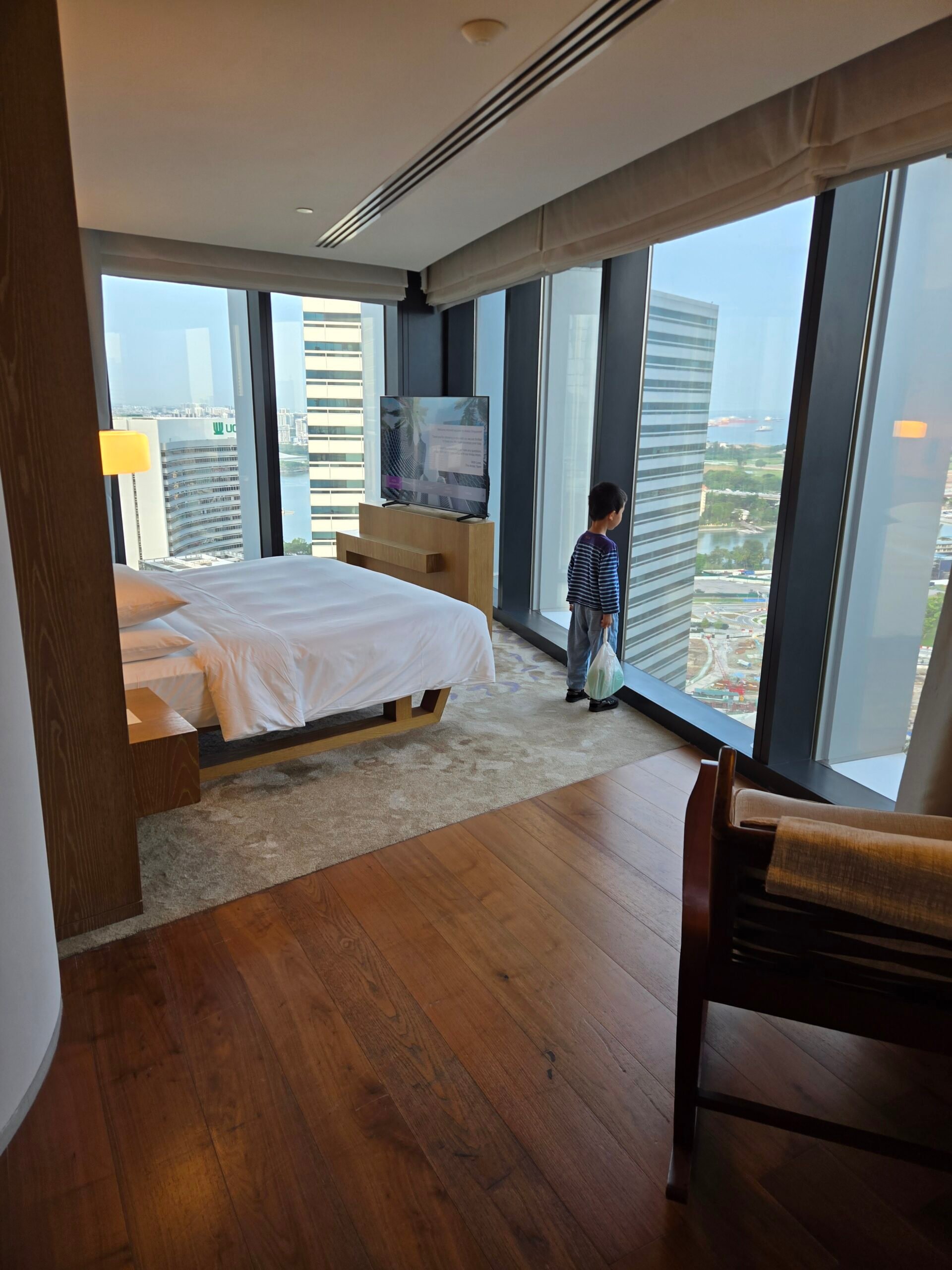 新加坡的凯悦集团旗下酒店并不多,主要就是新加坡君悦(Grand Hyatt)和新加坡安达仕(Andaz)两家。两家酒店的积分兑换标准都是每晚 25,000 分。如果积分不太充足,也可以考虑现金入住,一般每晚约 300–400 新币,折合不到 300 美元,现金入住的性价比反而更高。相比之下,君悦的行政酒廊餐饮更丰富,但地理位置不如安达仕便利。安达仕酒店位于武吉士(Bugis)地铁站上方,蓝线和绿线都可直达。如果搭乘地铁,建议选择蓝线,在出闸后找到 F 出口,乘电梯上楼即可。无论是烈日当头还是暴雨天气,都几乎不用在户外行走,非常方便。由于我此次是一个人带娃出行,交通便利性对我来说比酒廊餐饮更重要。权衡之后,我最终选择了安达仕酒店,并叠加套房券预订了 5 晚套房。