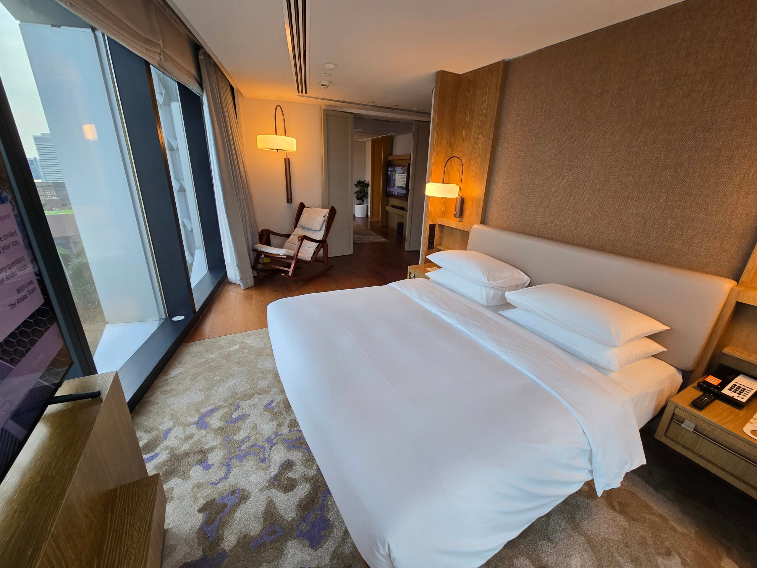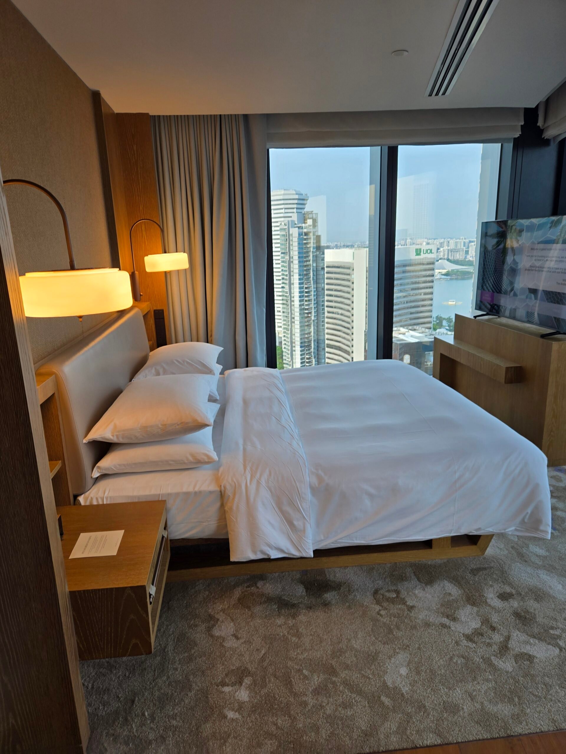 新加坡安达仕(Andaz Singapore)有不少优点:积分房放量充足,而且标准套房兑换也相当大方(至少在2025年夏天比较大方);早餐非常出色,中西合璧品种丰富;25楼的无边网红泳池景观极佳,俯瞰城市景色非常惬意;房间里Mini Bar 每天都会补充,饮品几乎可以随便喝。最吸引人的地方是——地理位置极其方便。酒店就在武吉士地铁站上方,蓝线和绿线都能直达。步行前往鱼尾狮公园或金沙酒店也只需 20 分钟左右,而且全程几乎不用走到户外。对于带娃出行或不想走太多路的旅客来说,绝对是访问新加坡的首选。