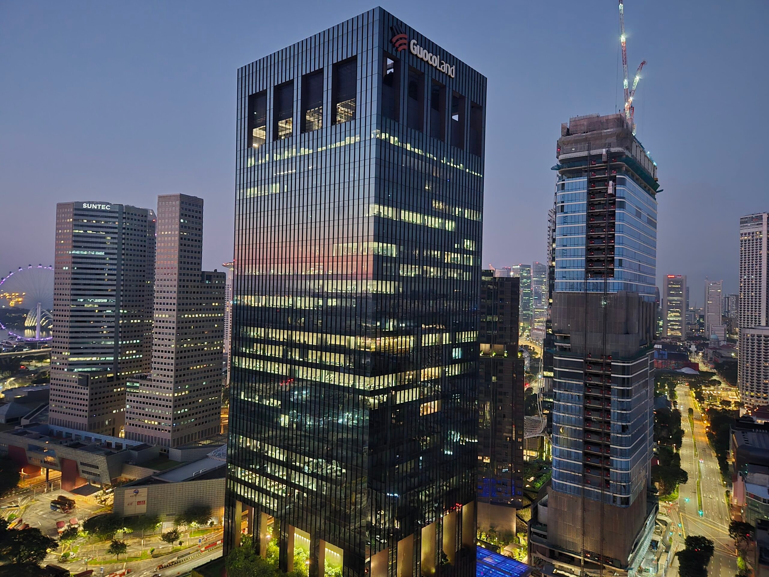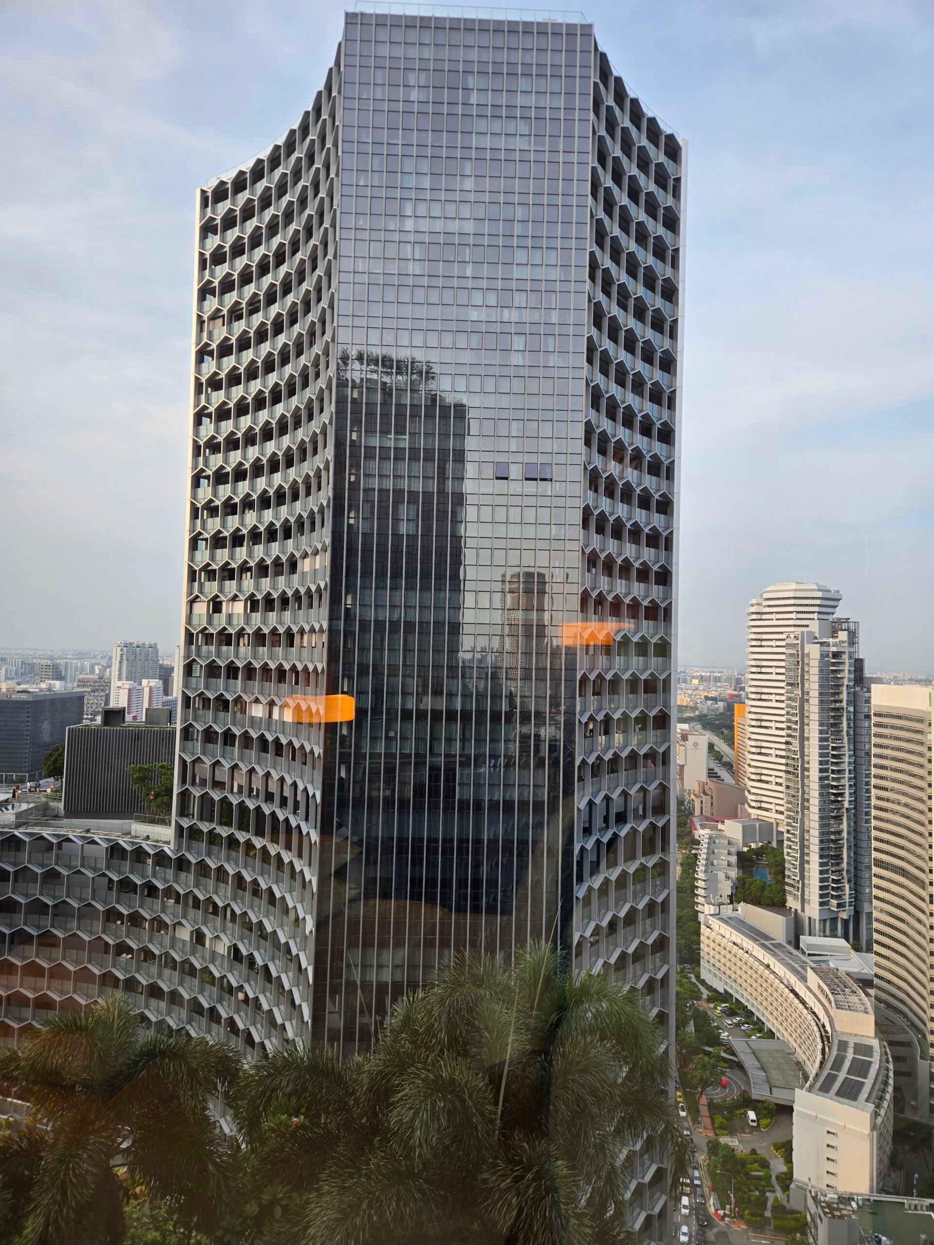 下面是窗外的景色,可以看DUO Tower(双景坊)另外一幢楼和楼下的泳池,以及能看到远处的新加坡摩天轮: