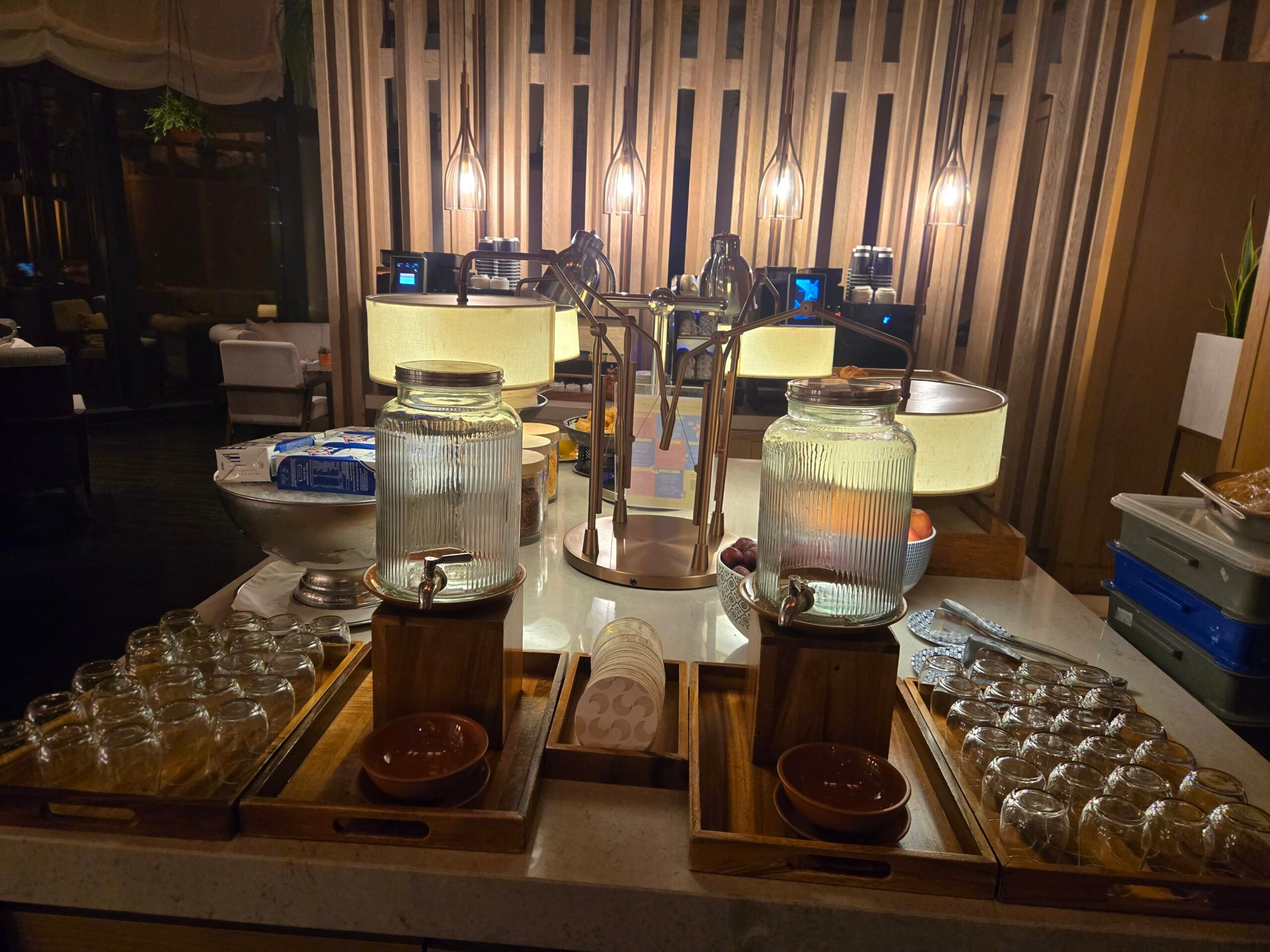 前台边上有个Sunroom小lounge,早饭或者晚饭的时候提供一些snack和饮料,全天都提供咖啡和柠檬水,对于新加坡这种热带国家,随时回到酒店就能补充水分还是非常重要的: