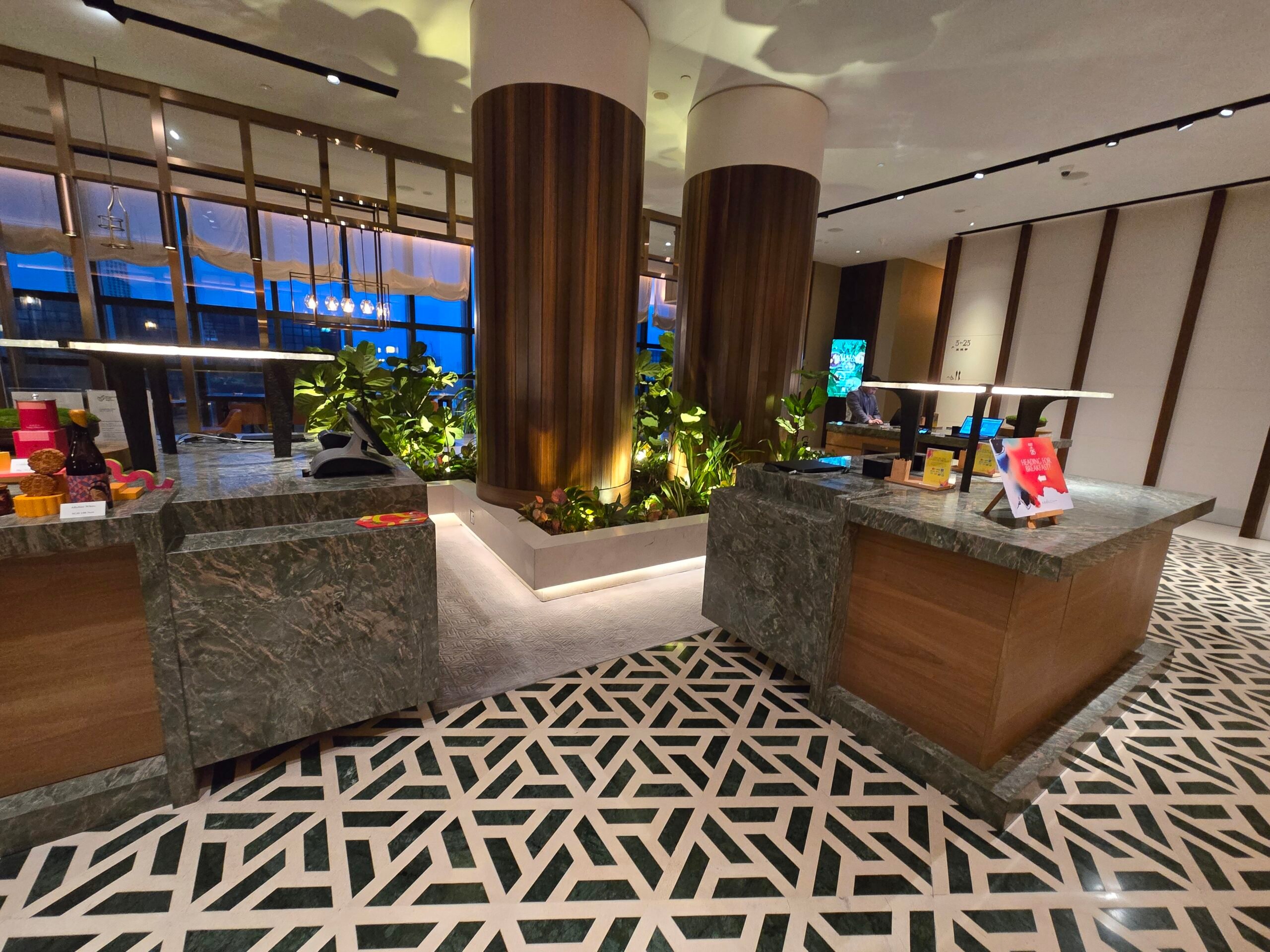 电梯到25楼才是Check In前台。由于我们从西雅图乘坐SQ27于新加坡时间傍晚抵达,到酒店时候正好是入住高峰,虽然只有两组旅客排在我们前面,但是等了有近小半小时才排到我们,入住效率这块需要改进: