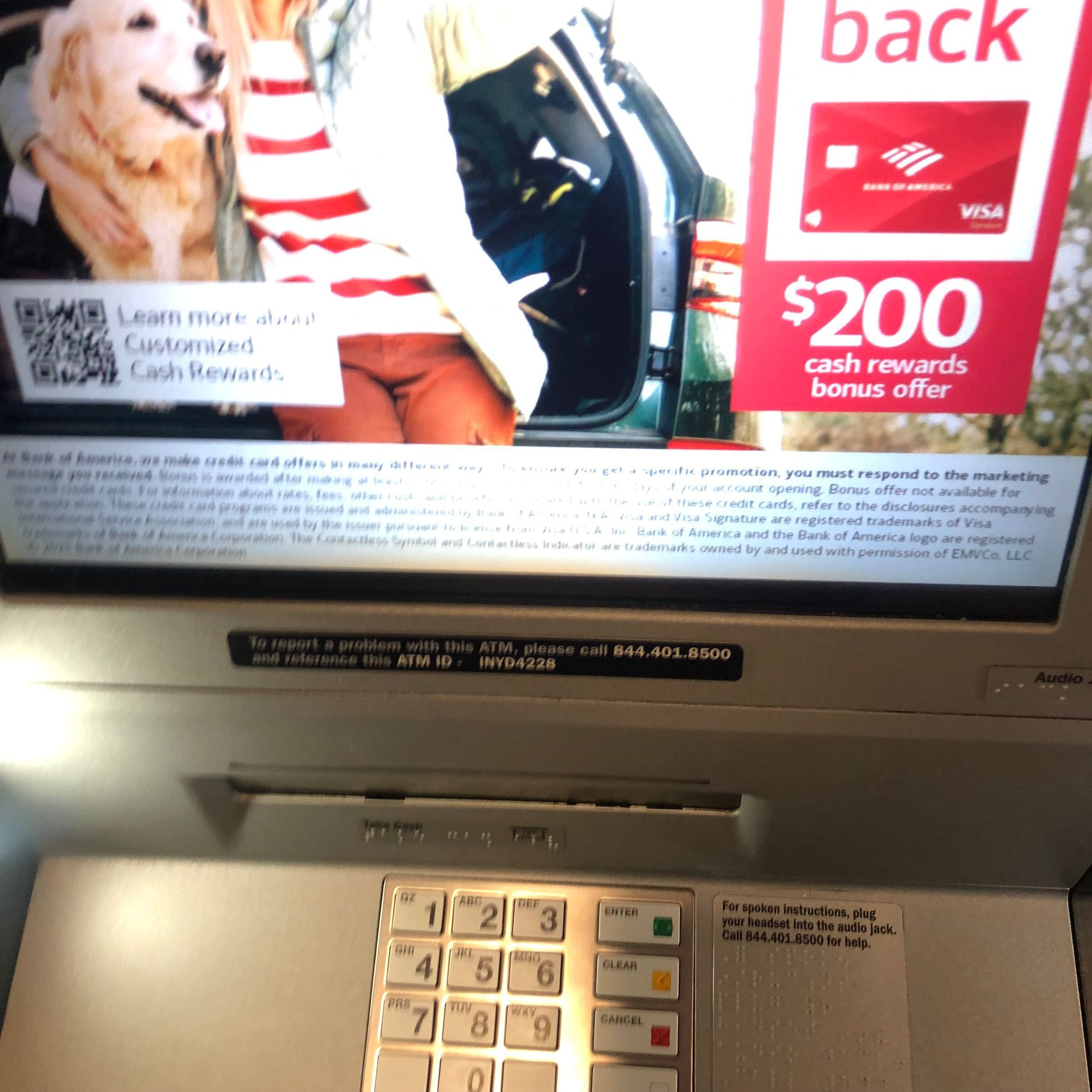 当时慌得不止一批了,赶紧先对着机器拍个照,然后就地拨打ATM上留下的客服电话844-401-8500。插一句,搂主突然想到国内ATM N年前的非法改装ATM机取款口然后贴上诈骗电话的骗局,比如这个新闻……好在美国的骗子没想法/没能力在ATM机器上做手脚(doge)